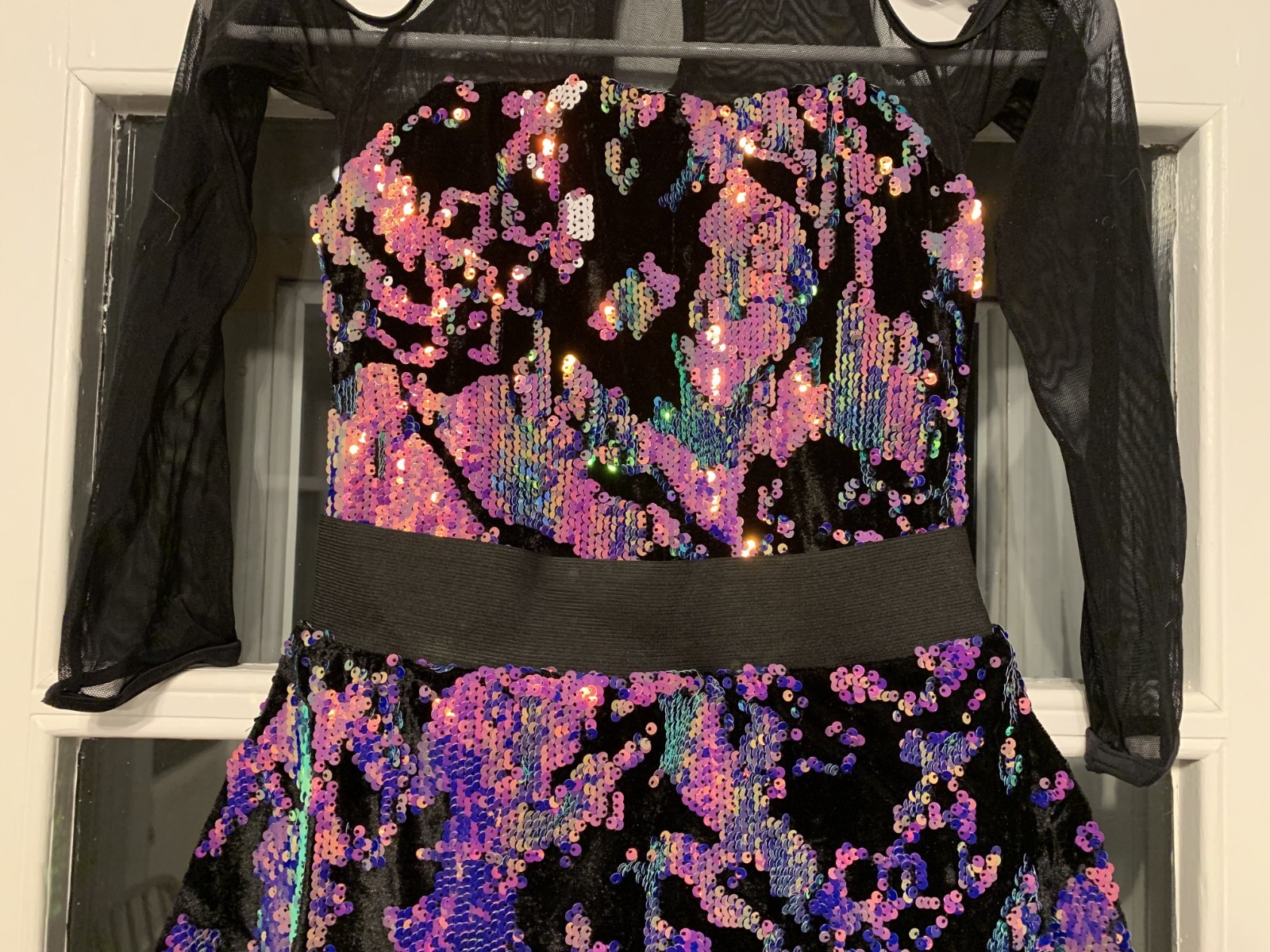 как выглядит WEISSMAN Childs Dance Costume Black Velveteen w/ Multi-Colored Sequins Size MC фото