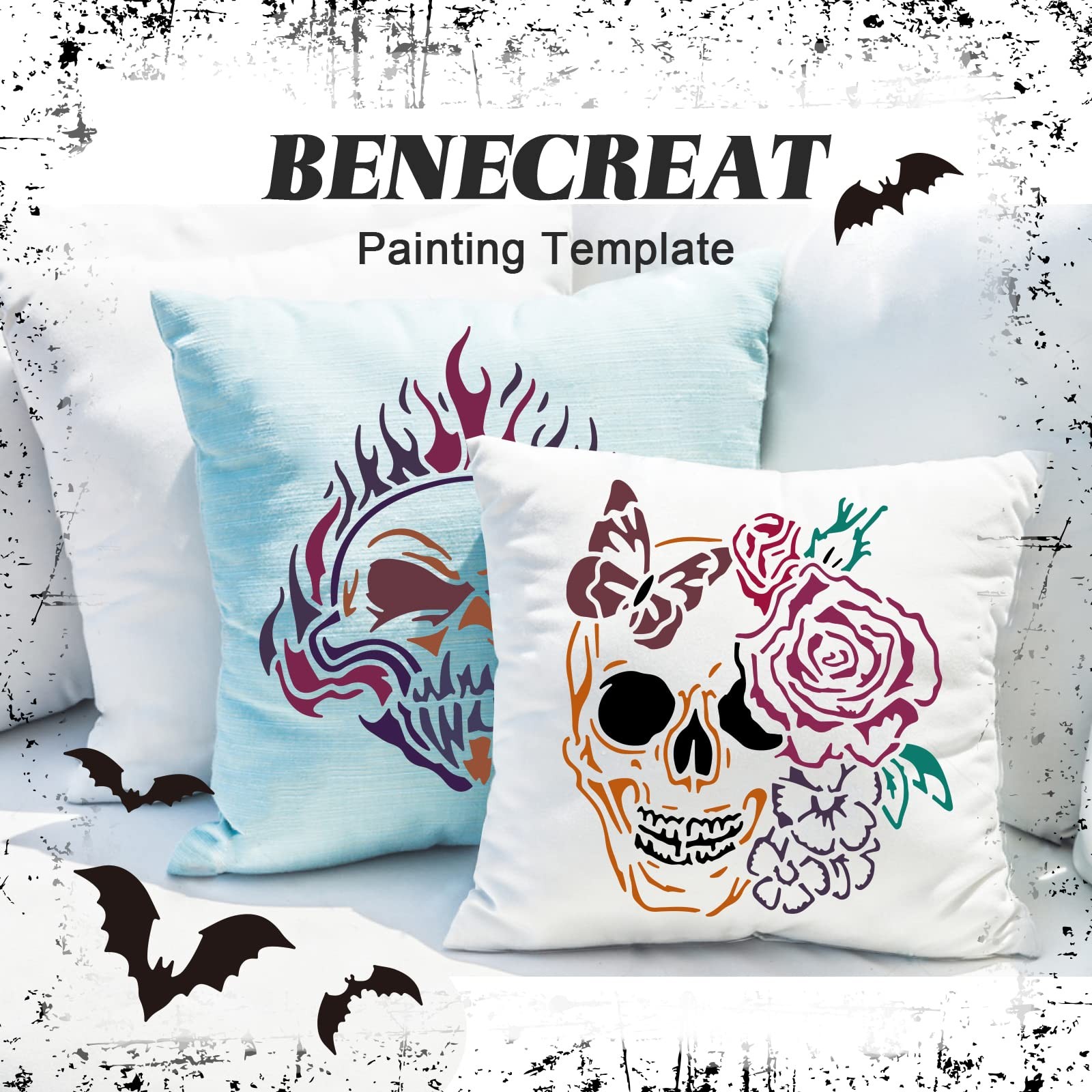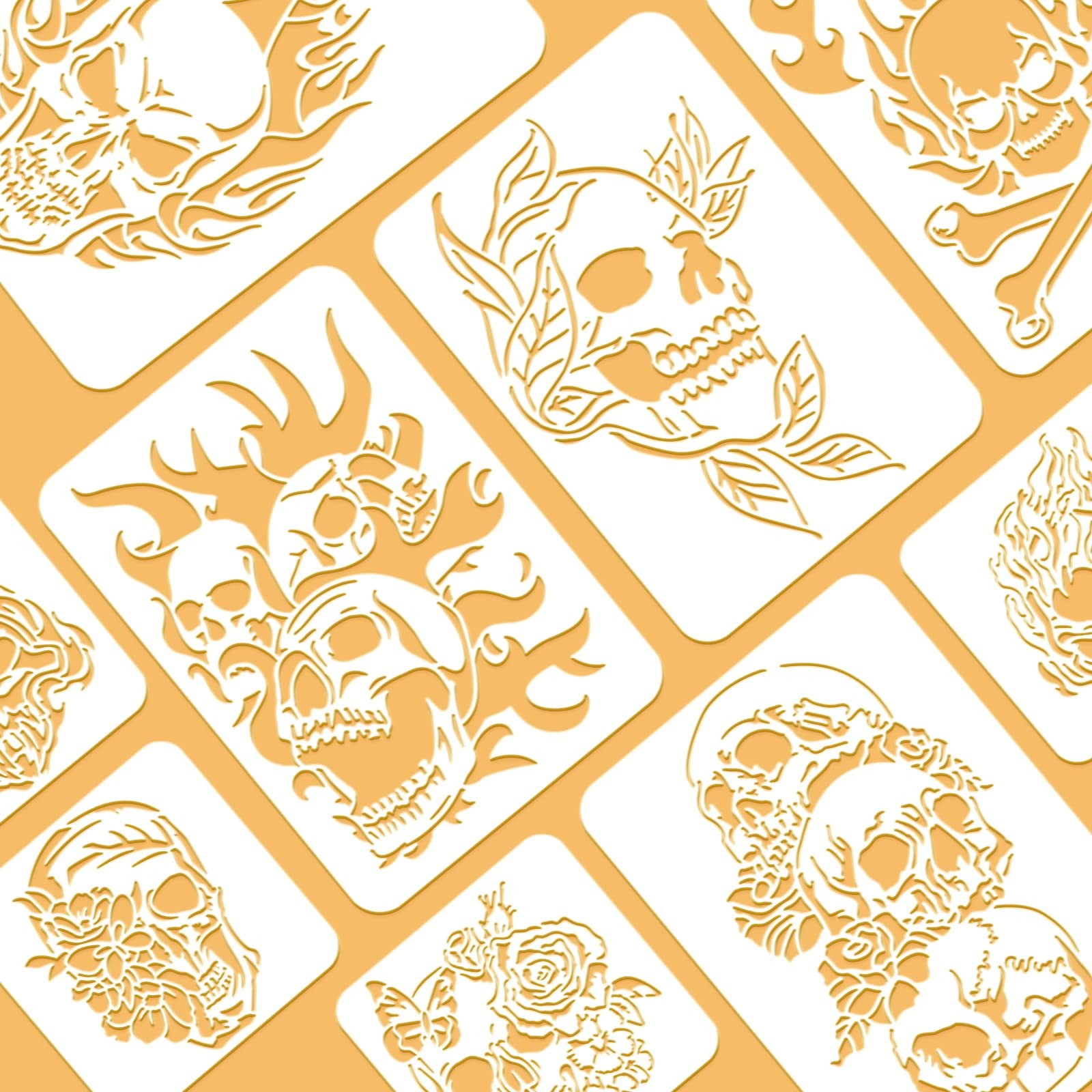 BENECREAT 13PCS Skull Pattern Drawing Stencils, Flame Halloween-Skull