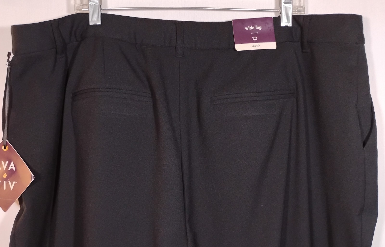 Ava Viv Women's Pants Size 22 Black Stretch Wide Leg Button Zip Fly Career AB6