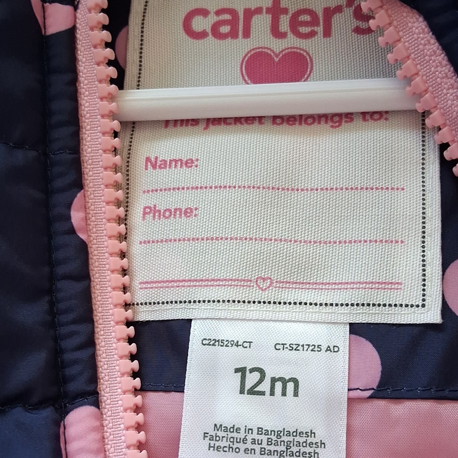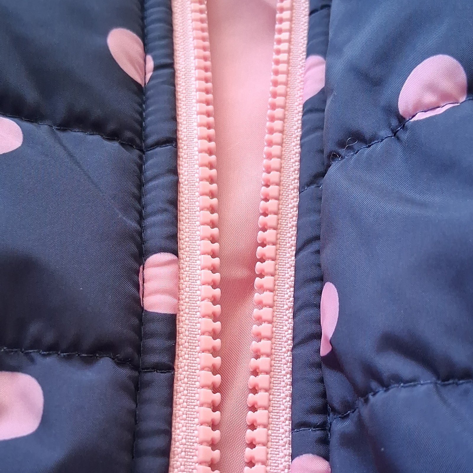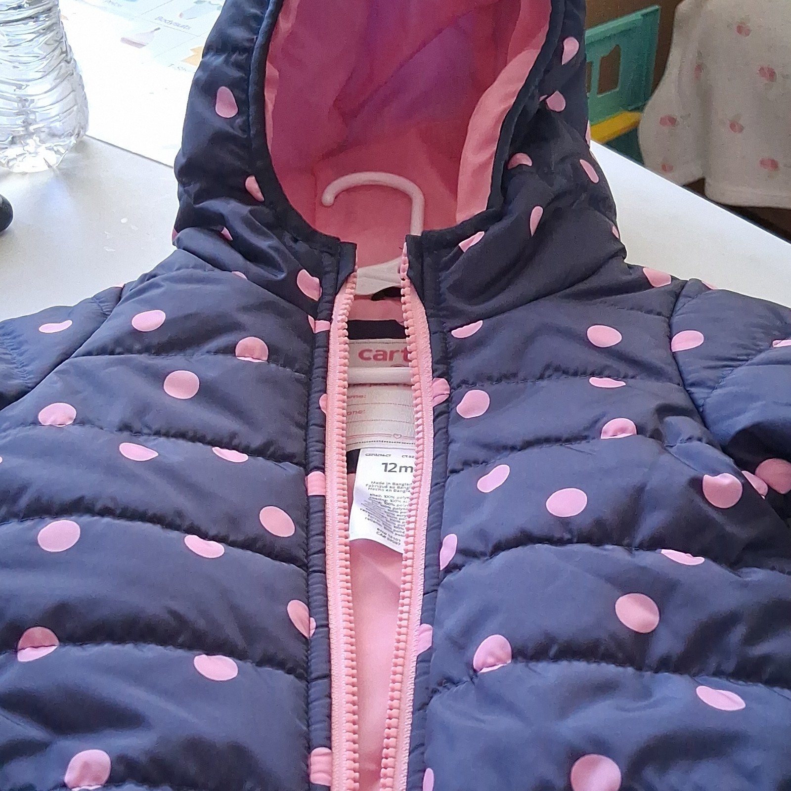 как выглядит Carters Navy Blue Pink Polka Dot Hooded Puffer Jacket 12M Full Zip фото