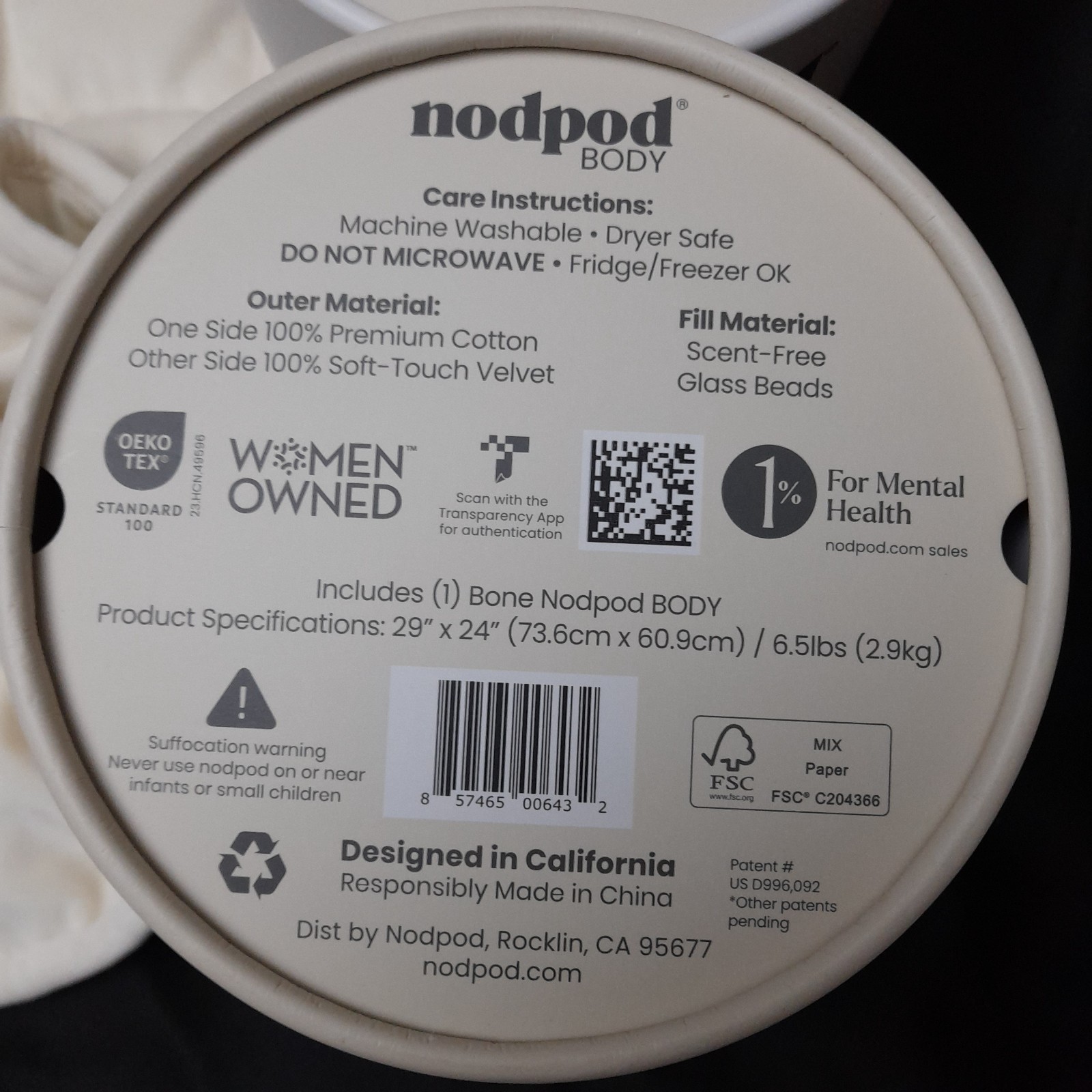 NEW Nodpod Body Weighted Pod Sleep Stress Relief Blanket 6.5 Pounds Beige