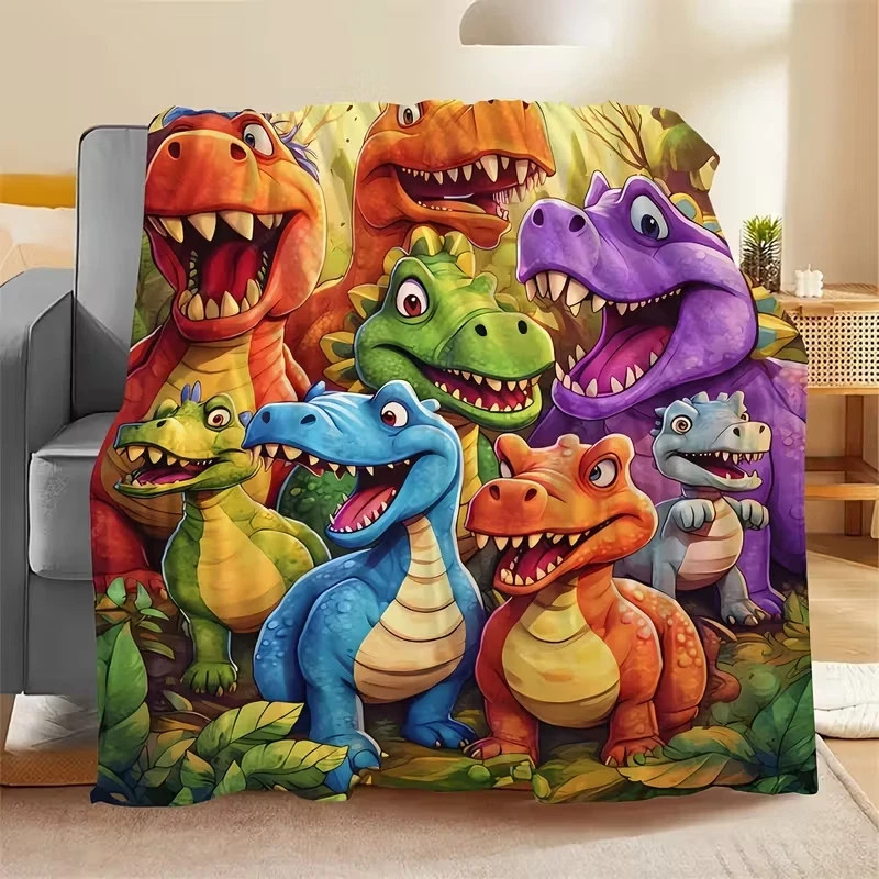 Cartoon Dinosaur Print Flannel Blanket Soft cute boys gift All-Season Washable