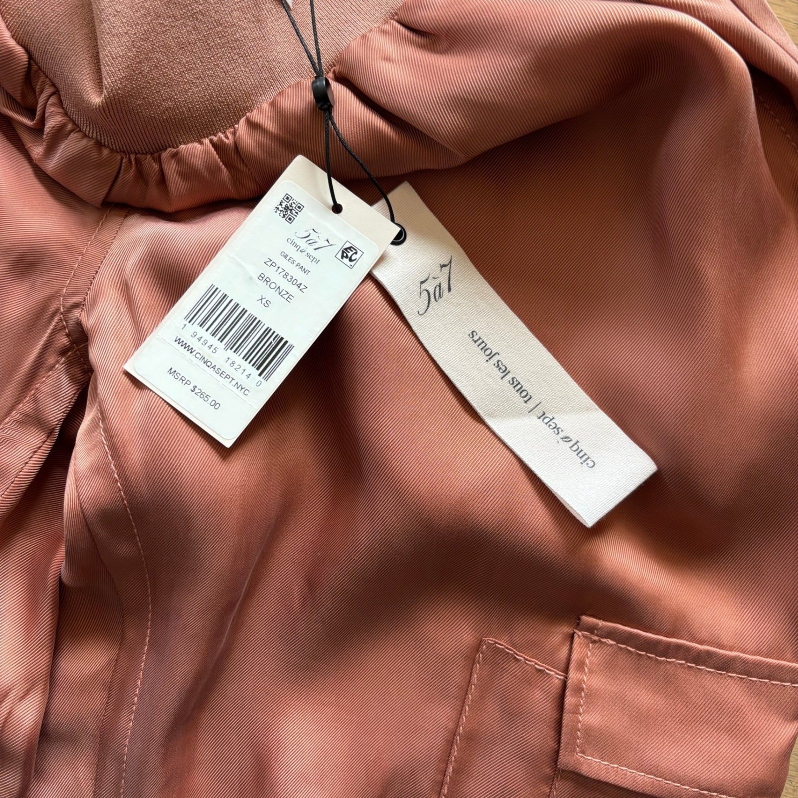 как выглядит Cinq a Sept Giles Pant Bronze Satin Cargo Jogger High Waist XS ZP178304Z фото