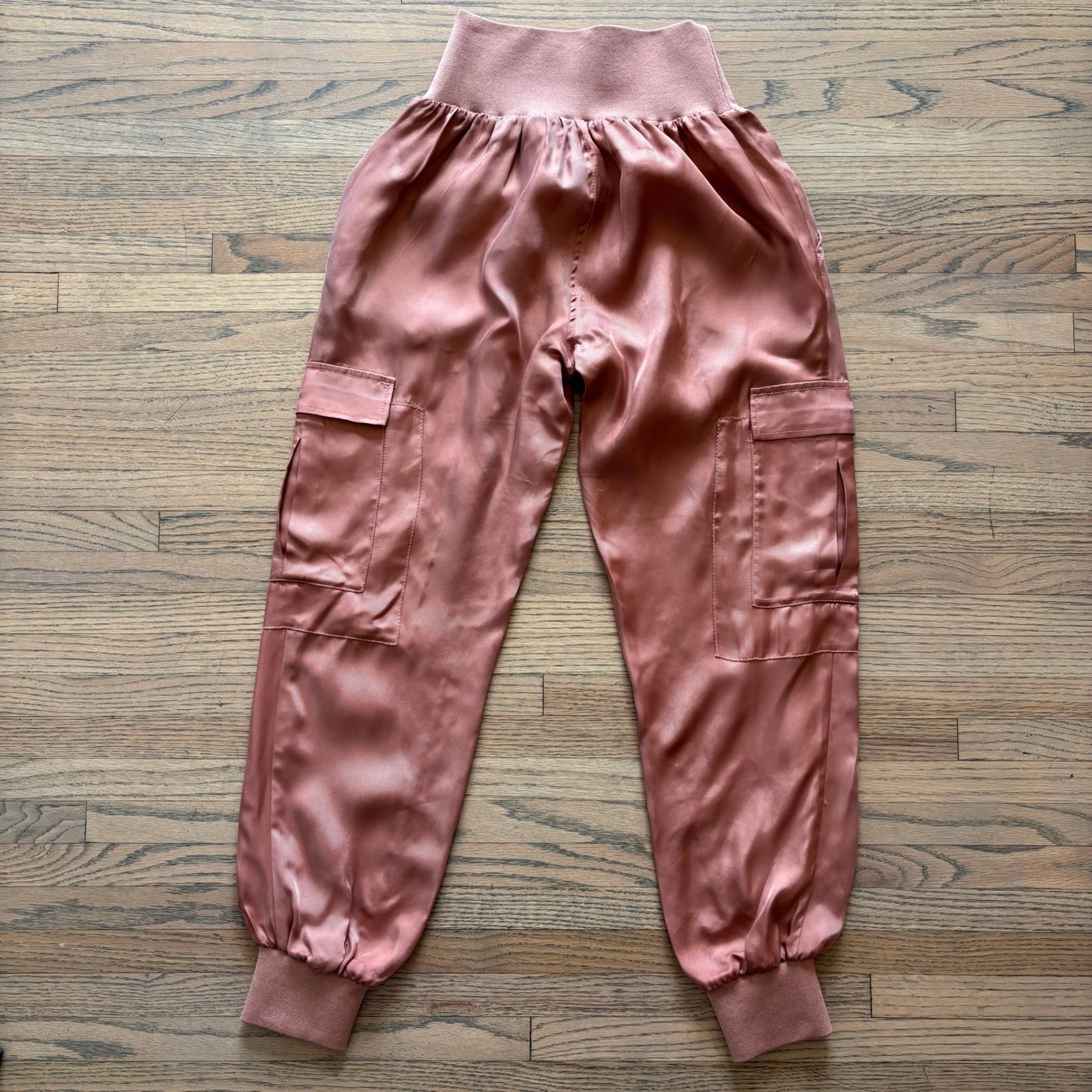 Cinq a Sept Giles Pant Bronze Satin Cargo Jogger High Waist XS ZP178304Z