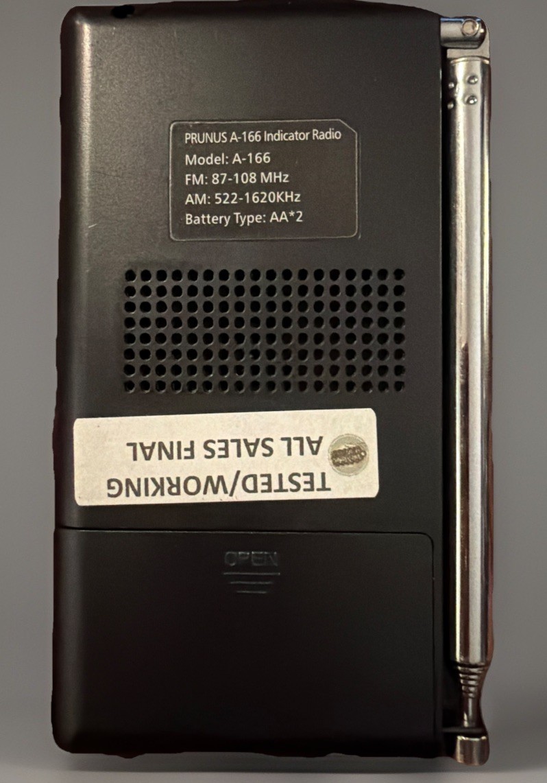 Prunus Black A-166 AM/FM Pocket Radio With Antenna Headphone Jack Tested Works