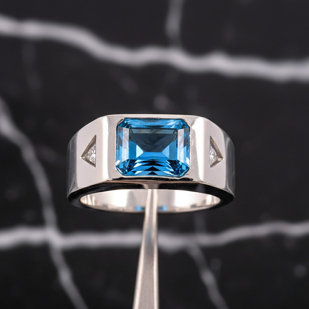как выглядит Natural Blue Topaz Gemstone with 925 Sterling Silver Ring For Men