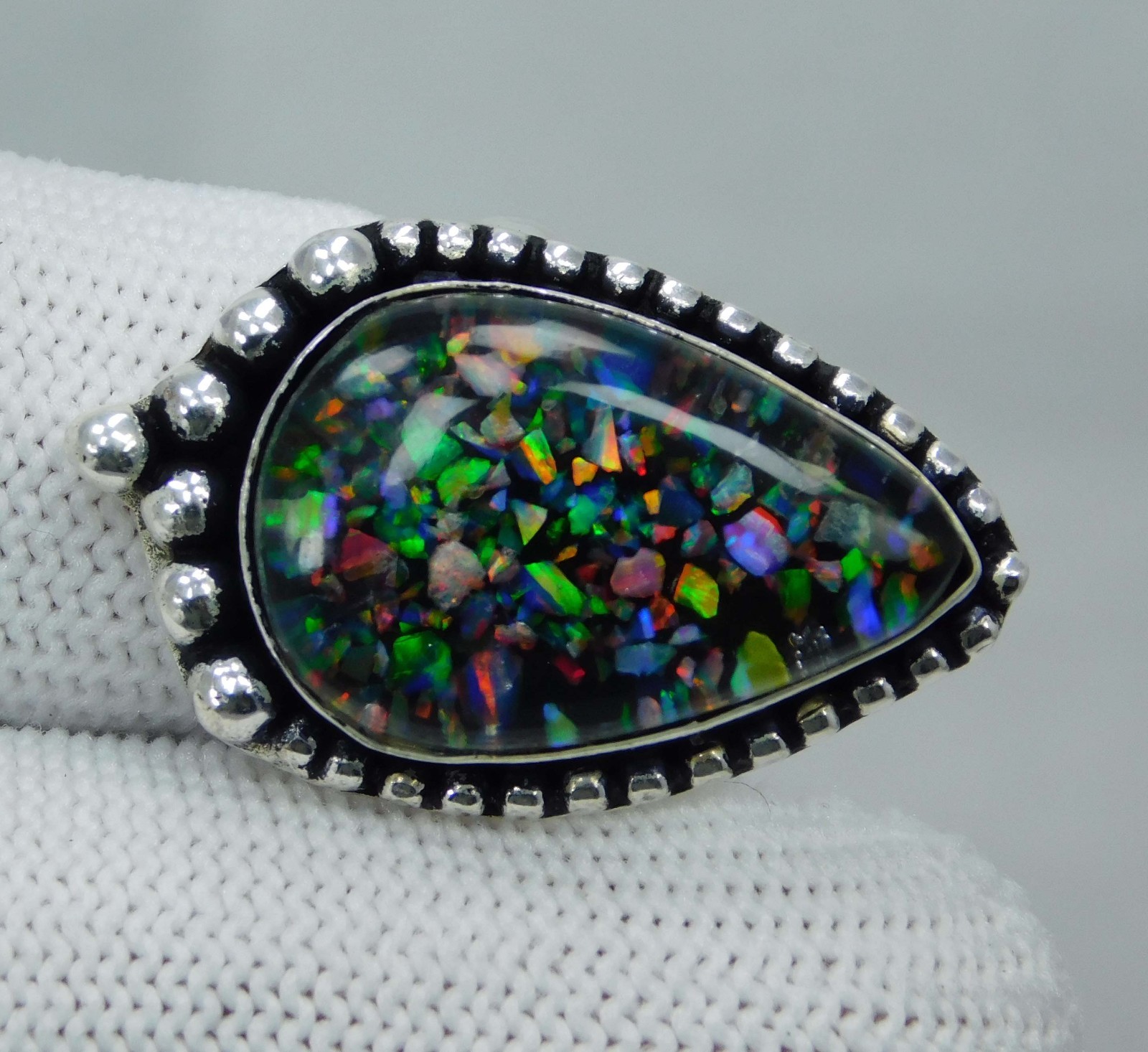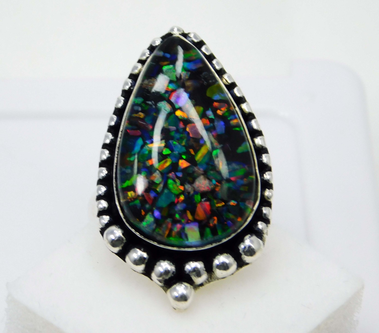 Natural 31.05 Ct Rainbow Fire Aurora Opal Ring 925 Sterling Silver