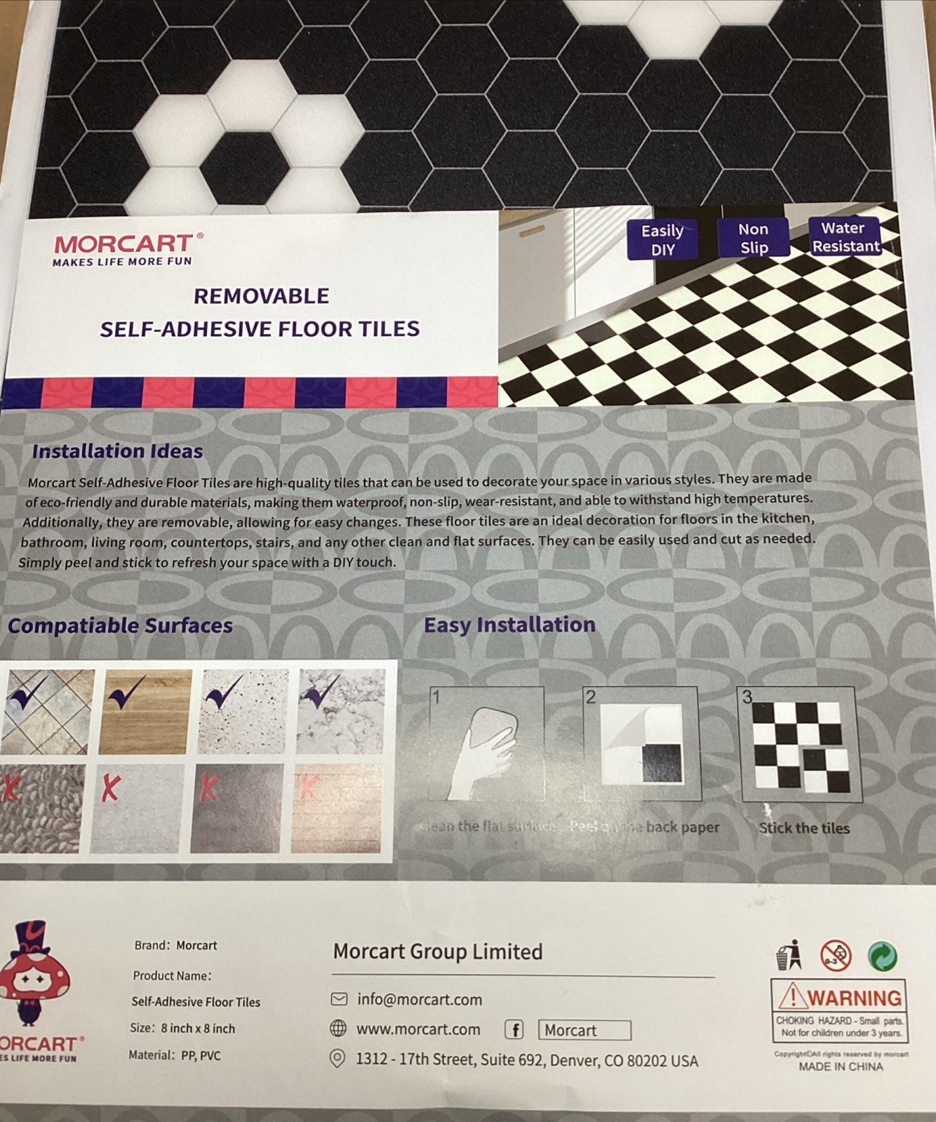 40-Pack Morcart Peel and Stick Floor Tiles - Black White Checkered - 8 X8