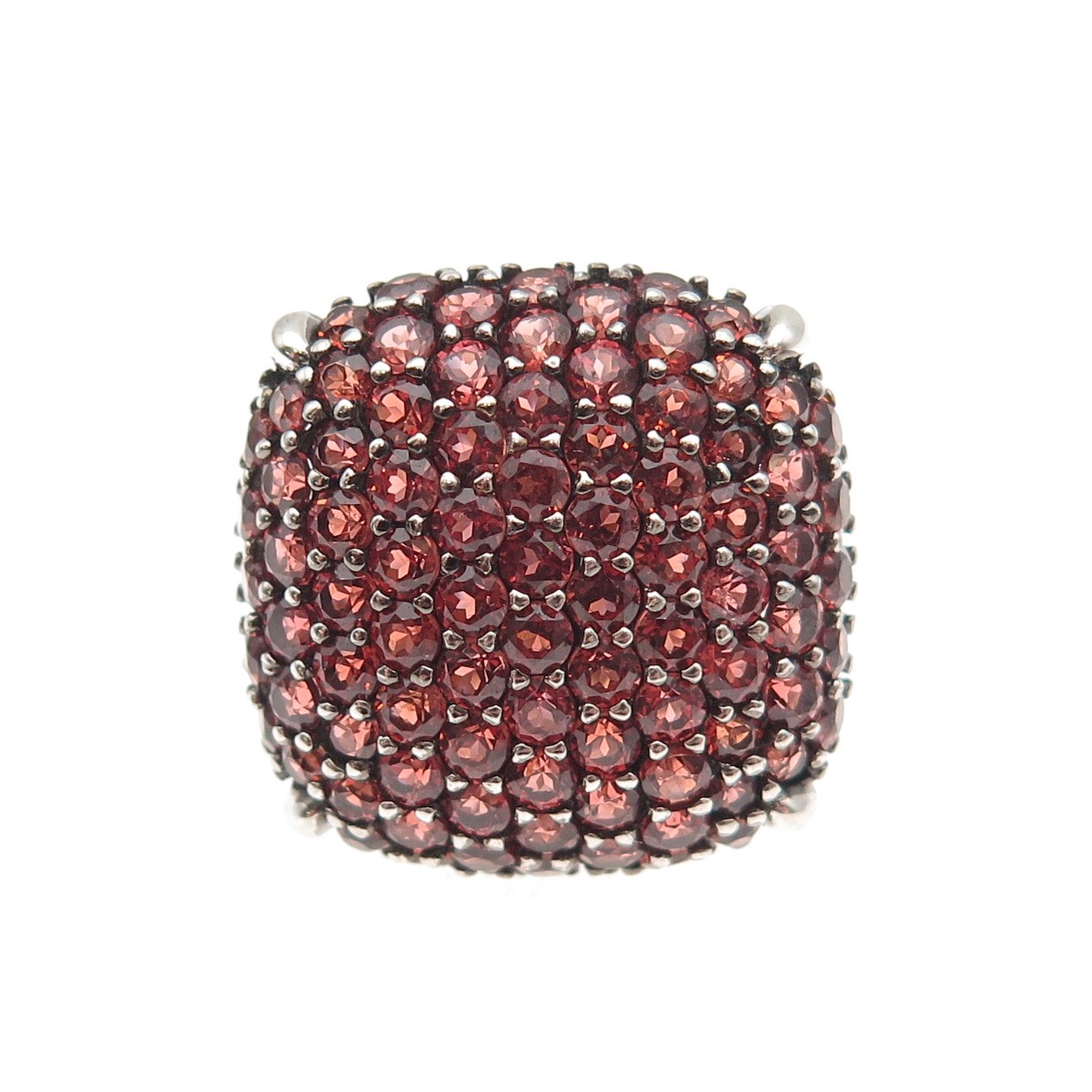 925 Sterling Silver Real Round-Cut Red Garnet Cushion Ring Size 5