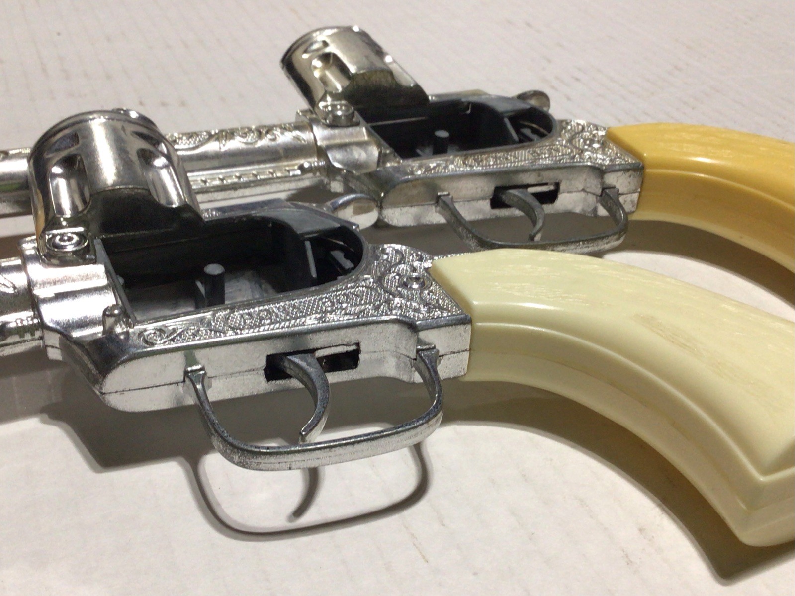 2 Vintage Pony Boy Cap Guns Toy Pop Bang Pow Roy Rodger Semi-Auto Roll Snap Boom
