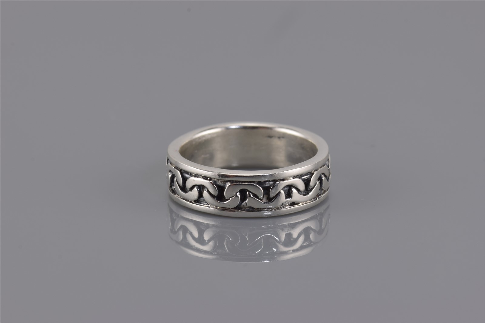 как выглядит Sterling Silver 6mm Over Under Oval Link Oxidized Band Ring 925 Sz: 7 фото