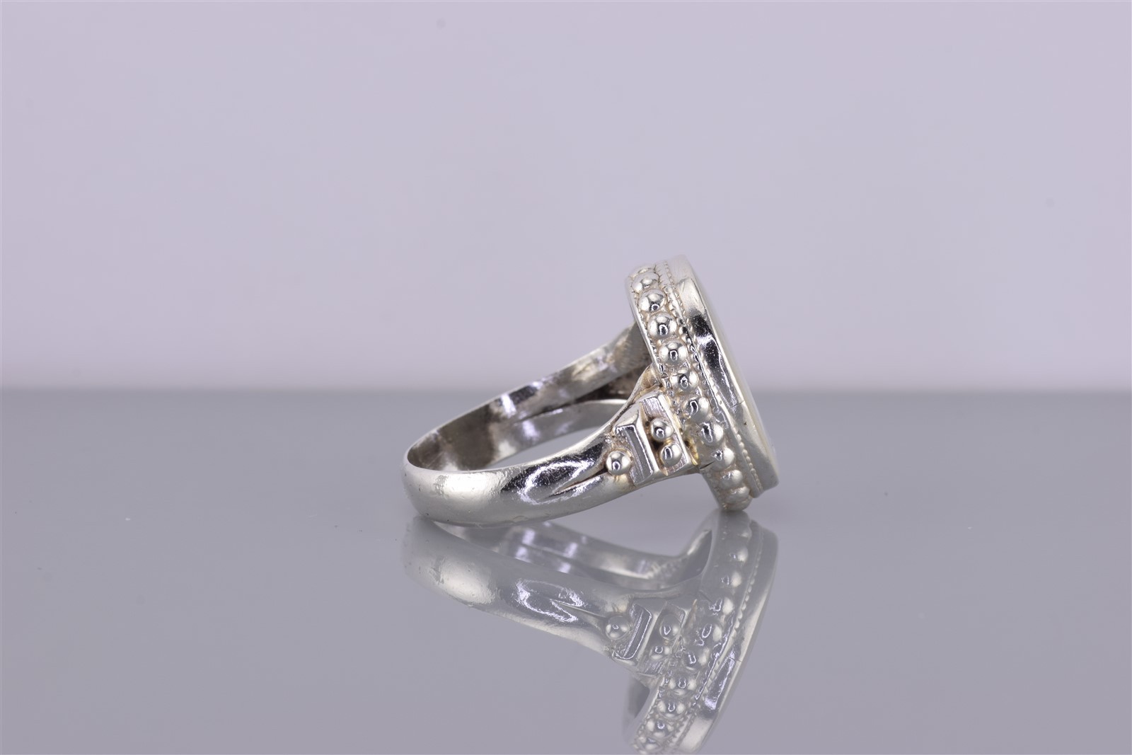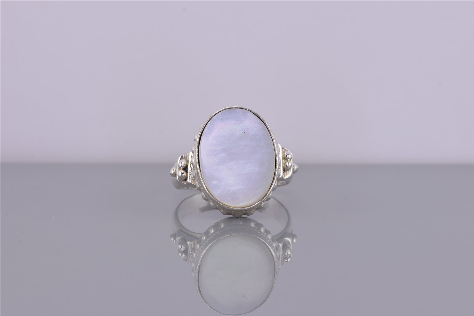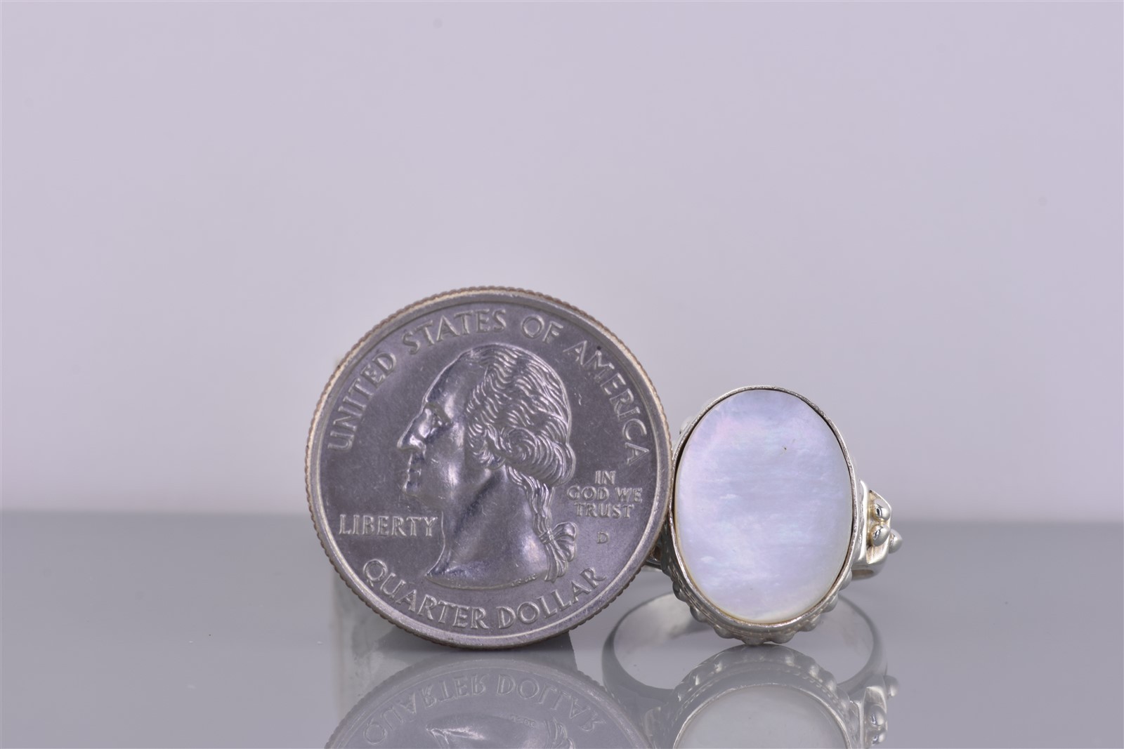 как выглядит Sterling Silver Oval Mother of Pearl Beaded Dot Bezel Band Ring 925 Sz: 7 фото