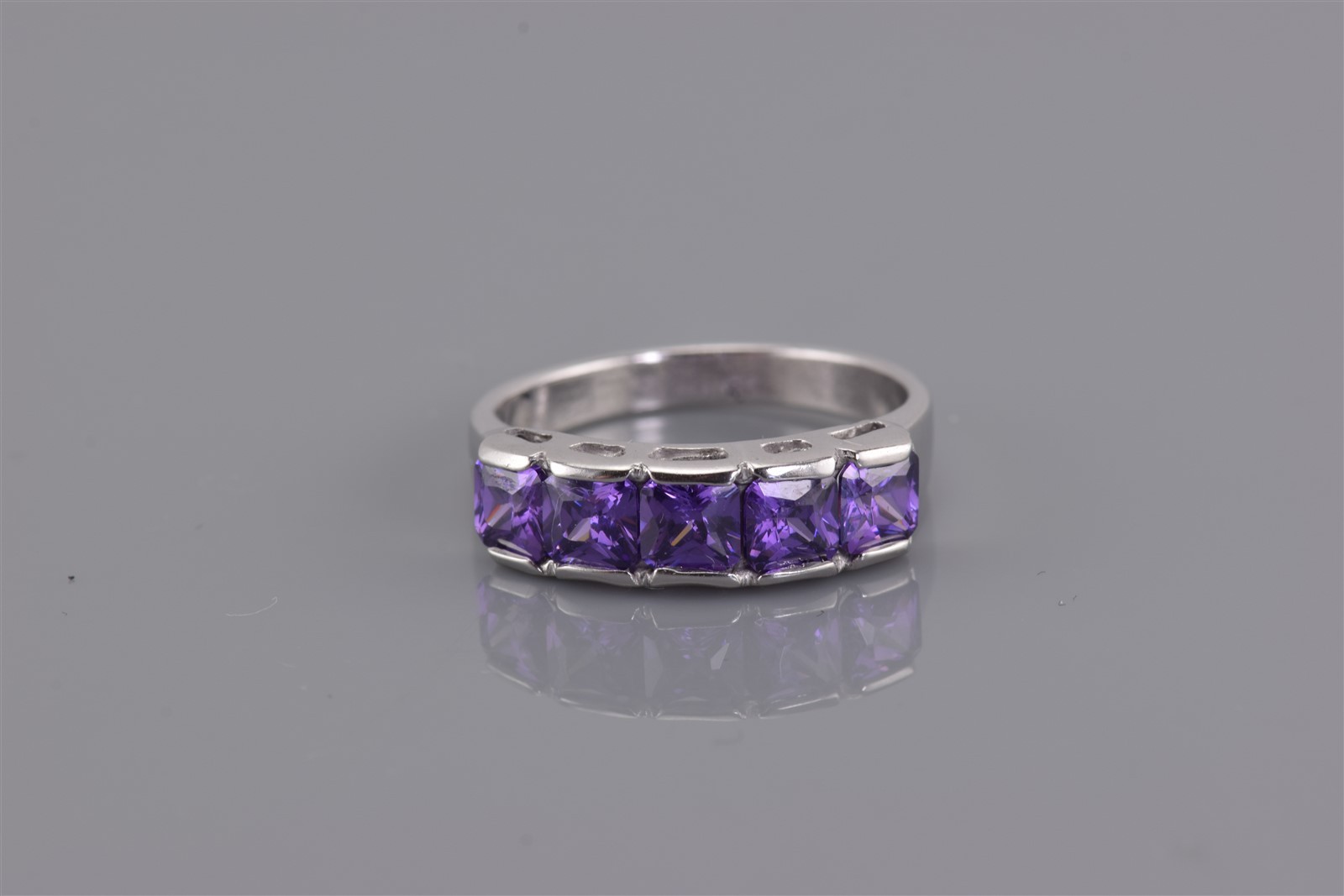 как выглядит Sterling Silver Sectioned Channel Set Purple Cubic Zirconia Band Ring 925 Sz: 6 фото