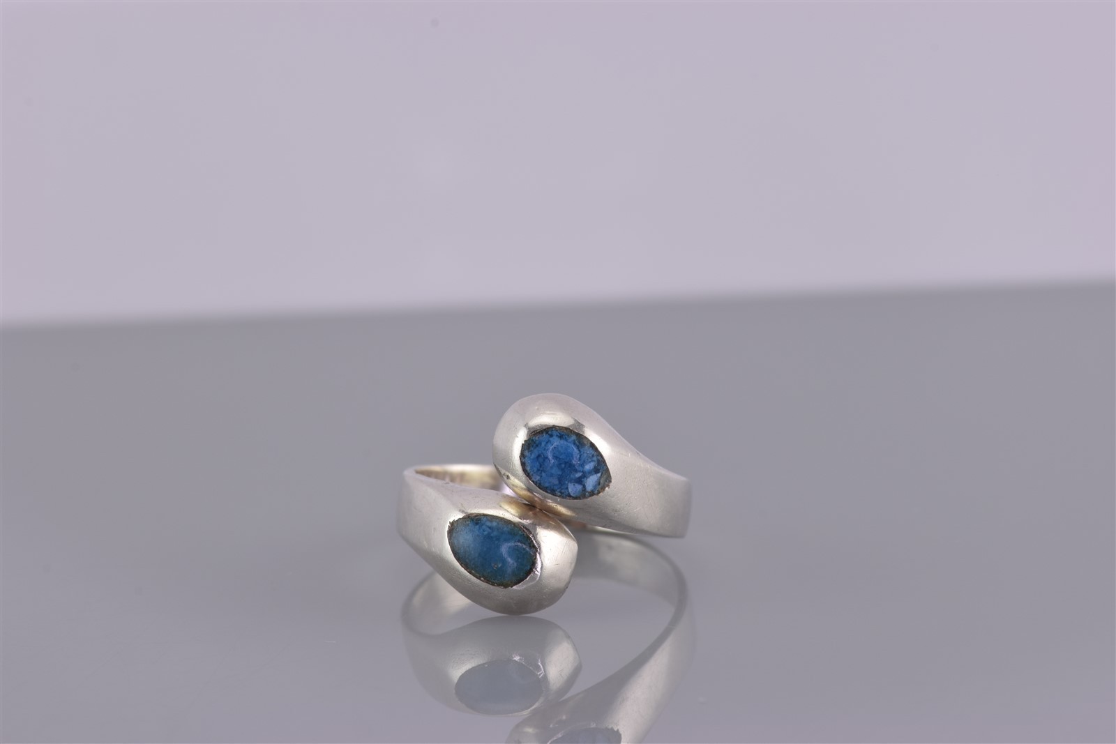 как выглядит Sterling Silver Blue Turquoise Solid Bypass Band Ring 925 Sz: 4 фото