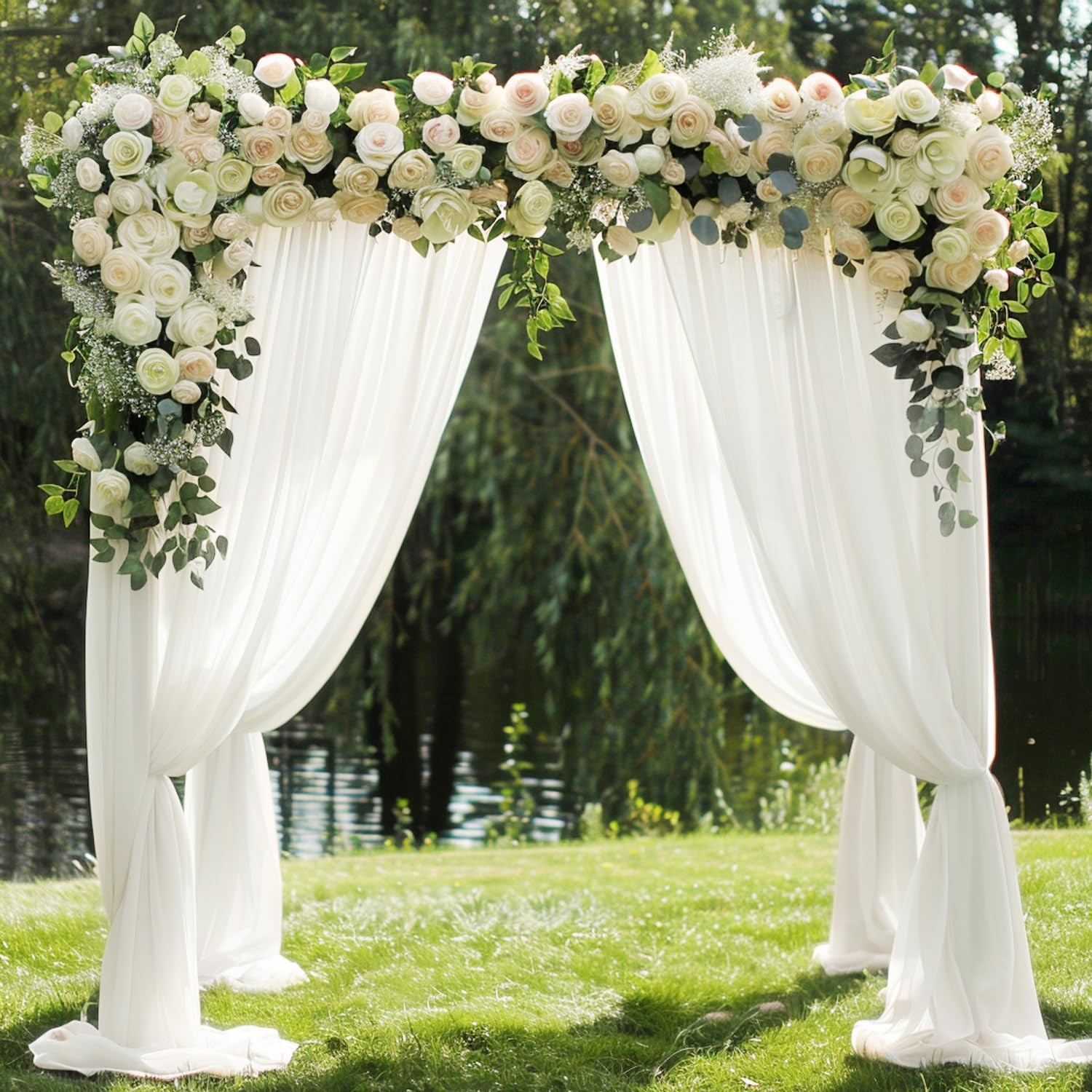как выглядит Ivory Wedding Arch Draping Fabric Backdrop 4 Panels 28.7" X 20FT Sheer Drapes... фото