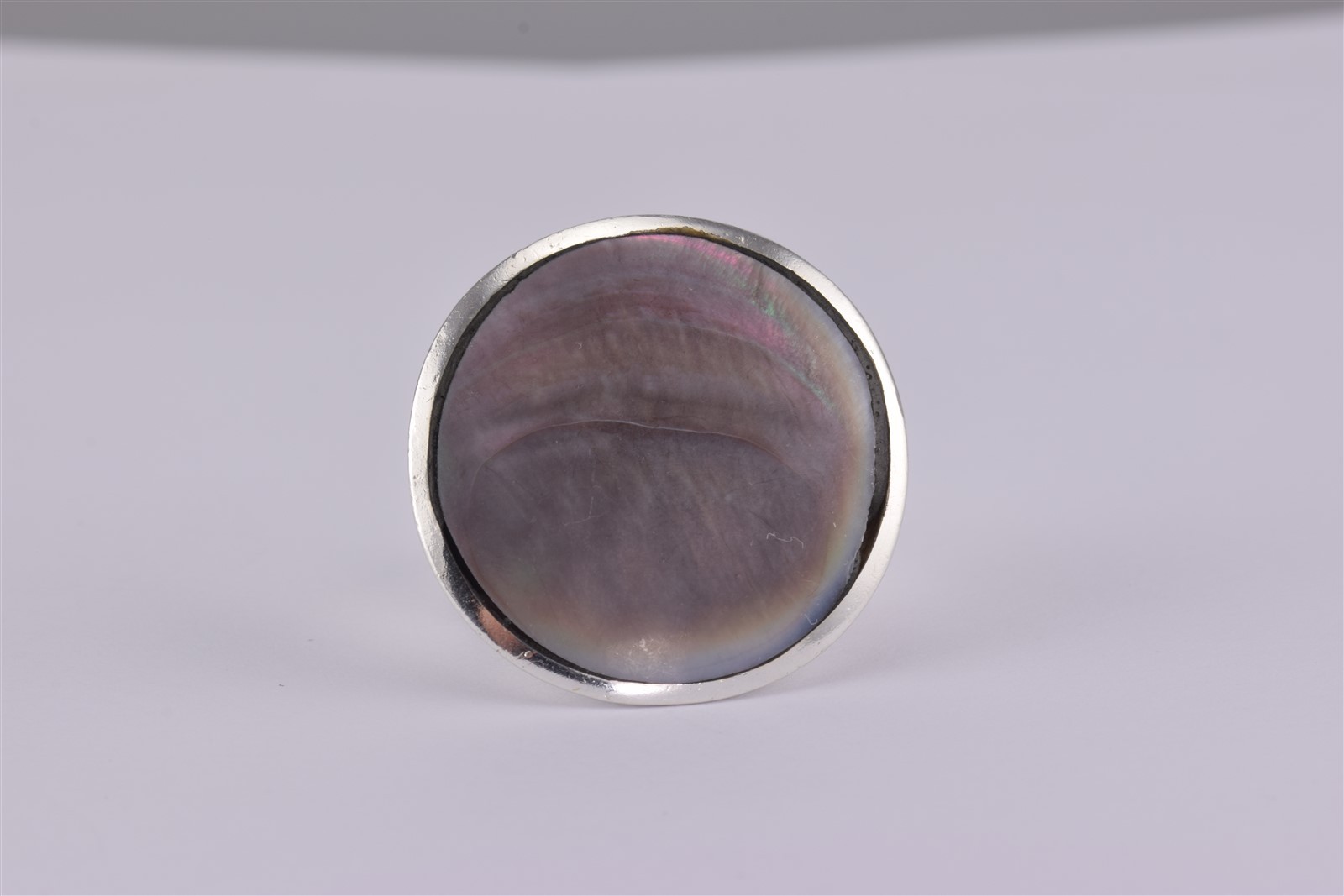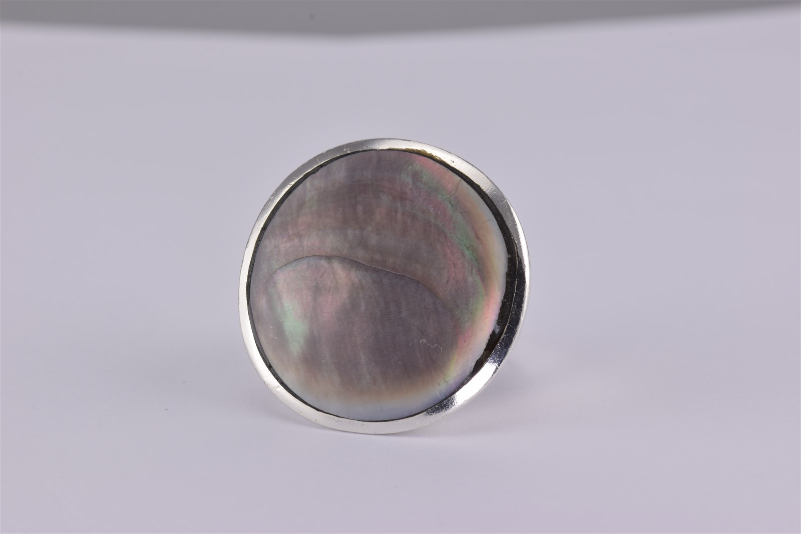 как выглядит Sterling Silver 27mm Round Abalone Polished Statement Band Ring 925 Sz: 7 фото