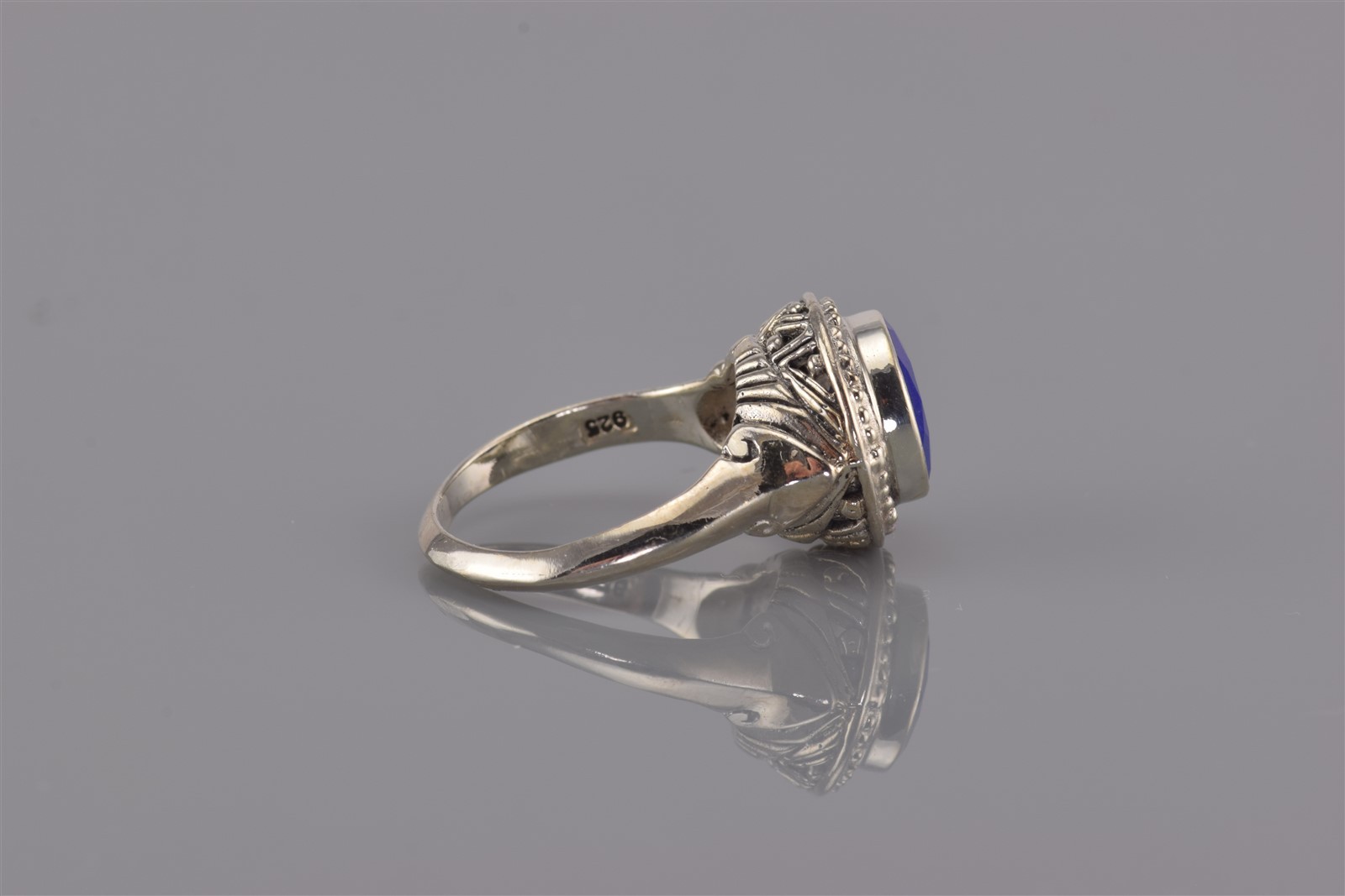 как выглядит Sterling Silver Beaded Raised Bezel Faceted Blue Lapis Band Ring 925 Sz: 7 фото