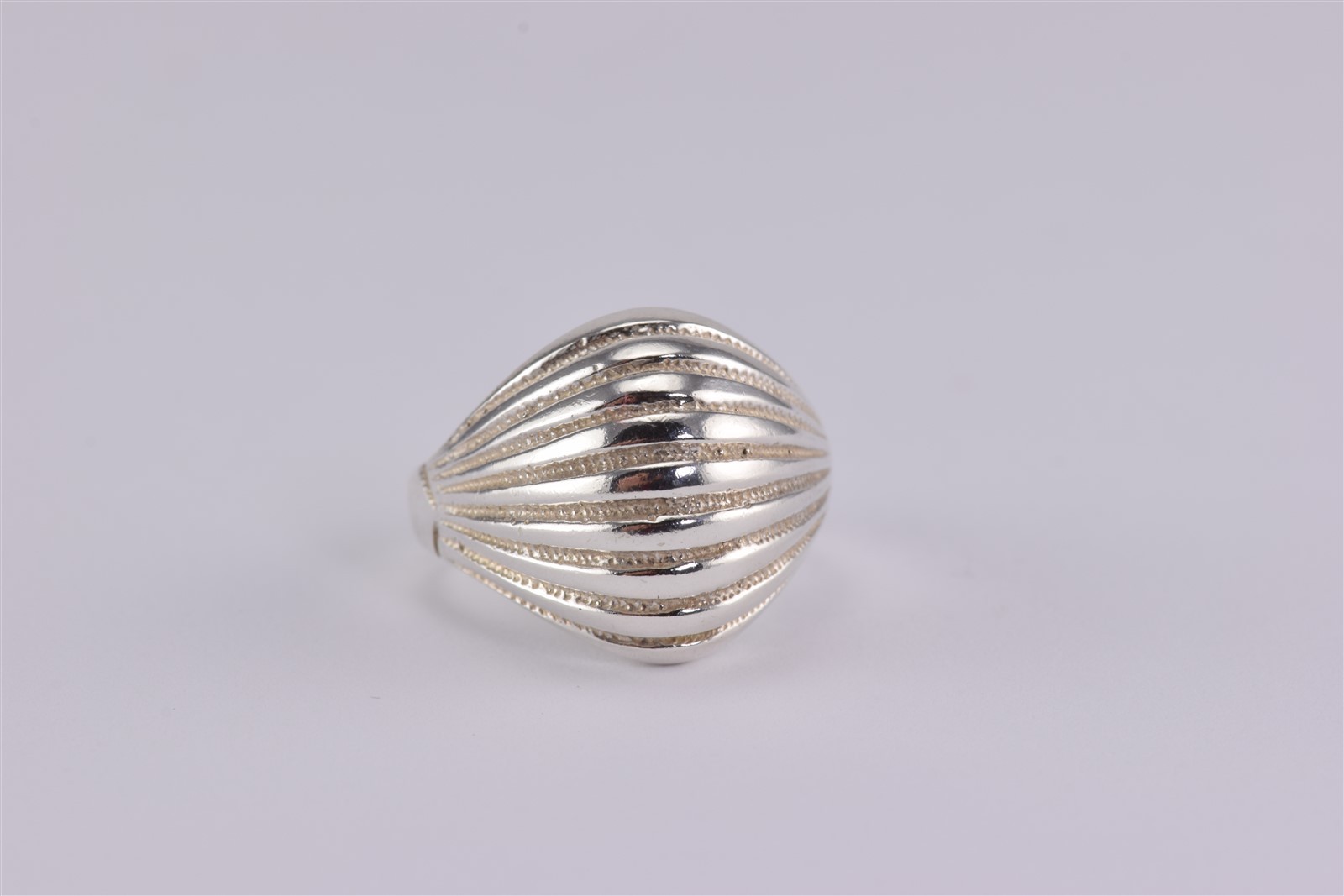 как выглядит Sterling Silver 15mm Tapered Ribbed Dome Band Ring 925 Sz: 5 фото