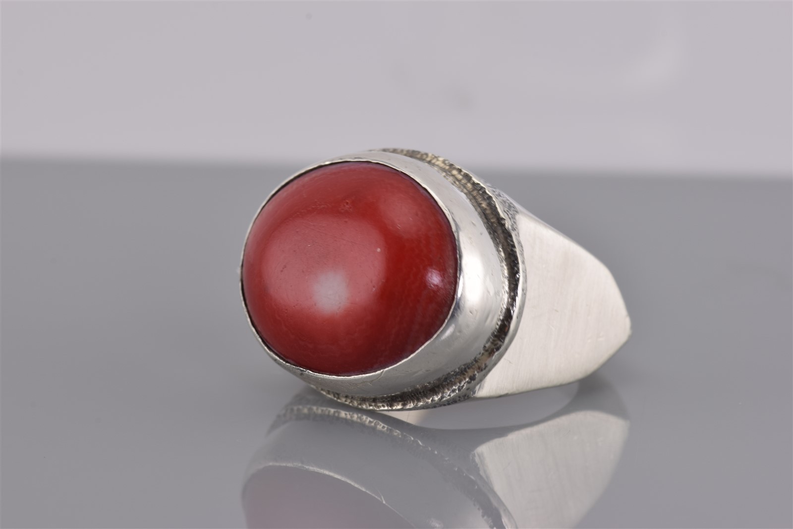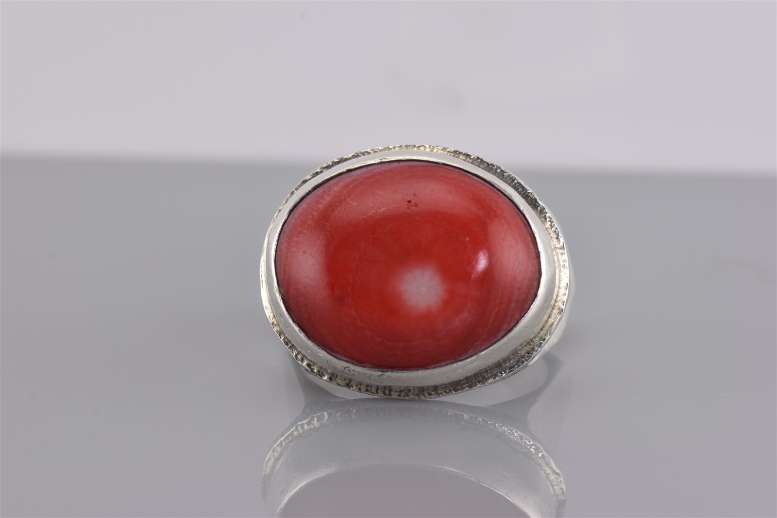 как выглядит Handmade Signed Sterling Silver Bold Red Coral Statement Band Ring 17g 925 Sz: 8 фото