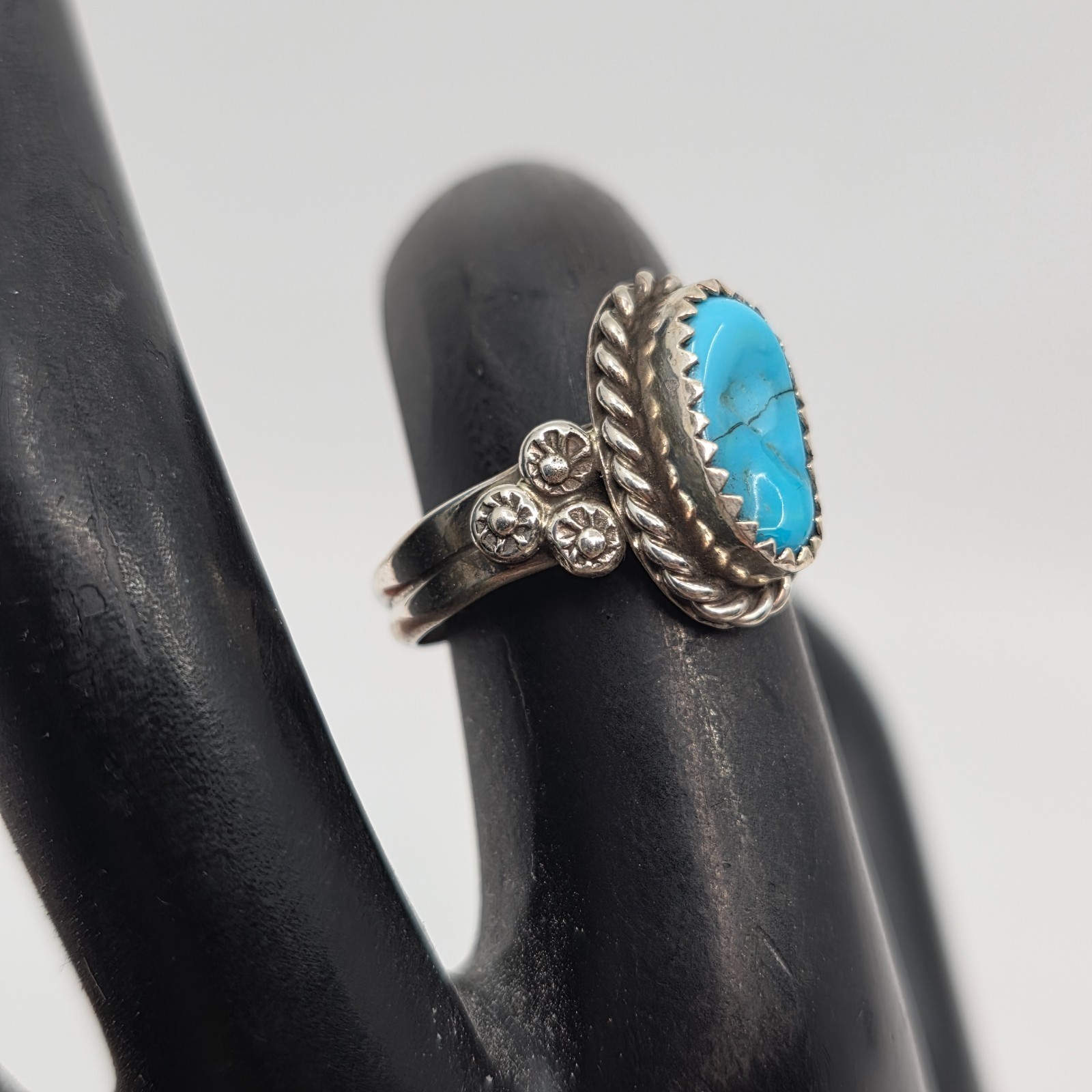 Native American Sterling Silver Turquoise Navajo Ring Size 7