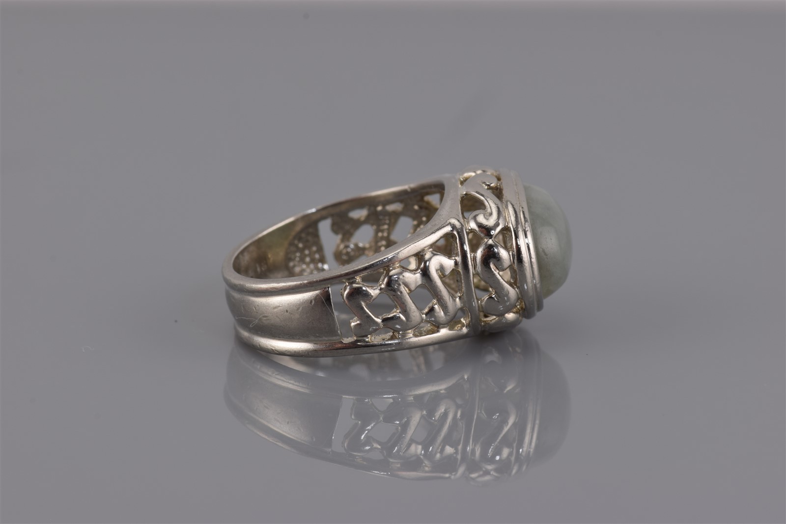 Sterling Silver Raised Polished Chalcedony Openwork Band Ring 925 Sz: 8