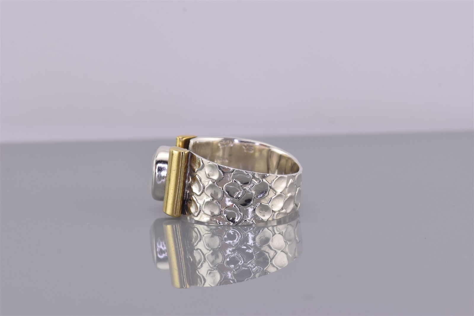 как выглядит Two Tone Sterling Silver Oval Faceted Moonstone Textured Band Ring 925 Sz: 7 фото
