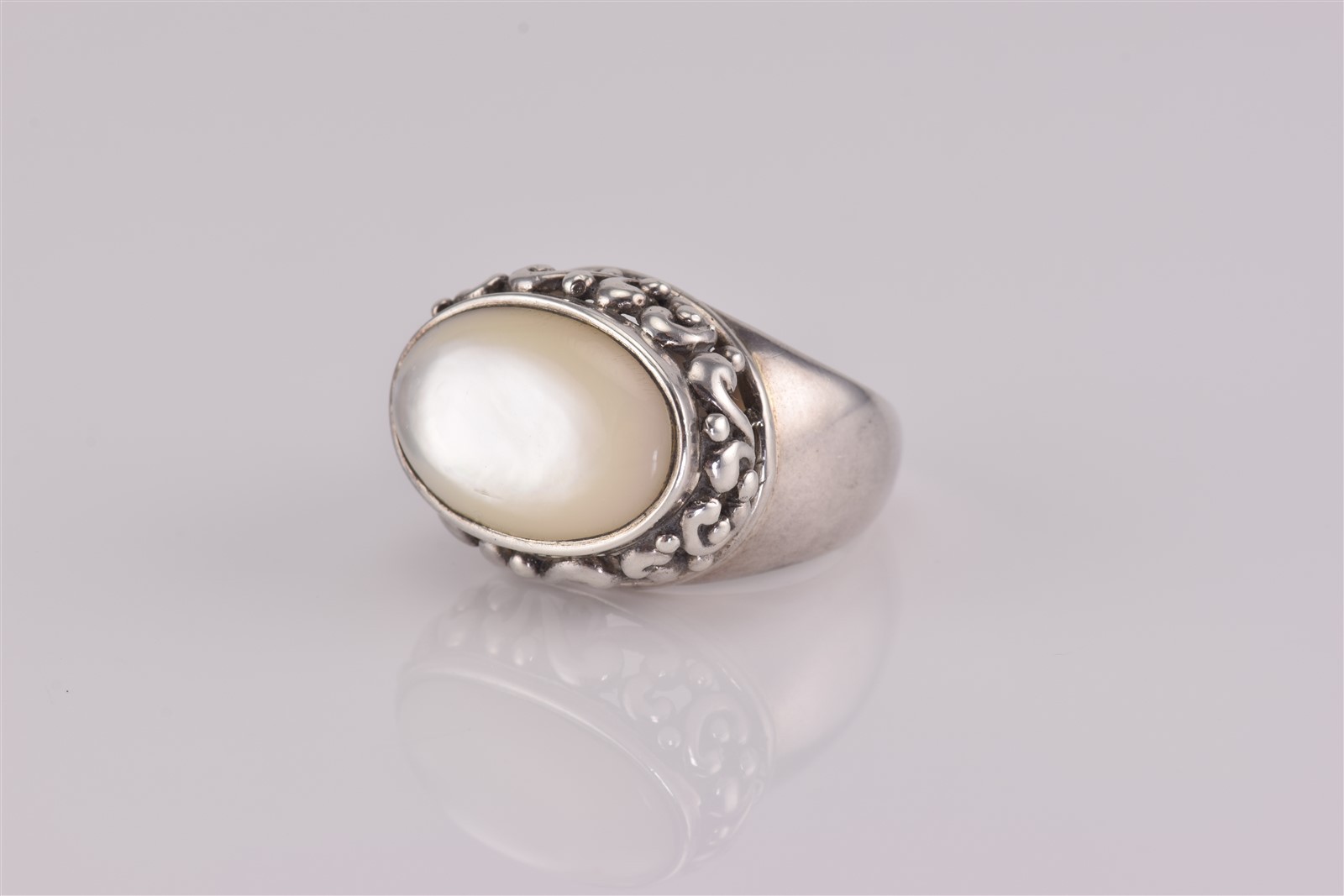как выглядит MWS Sterling Silver Scrolled Bezel Mother of Pearl Band Ring BOLD 10g 925 Sz: 7 фото