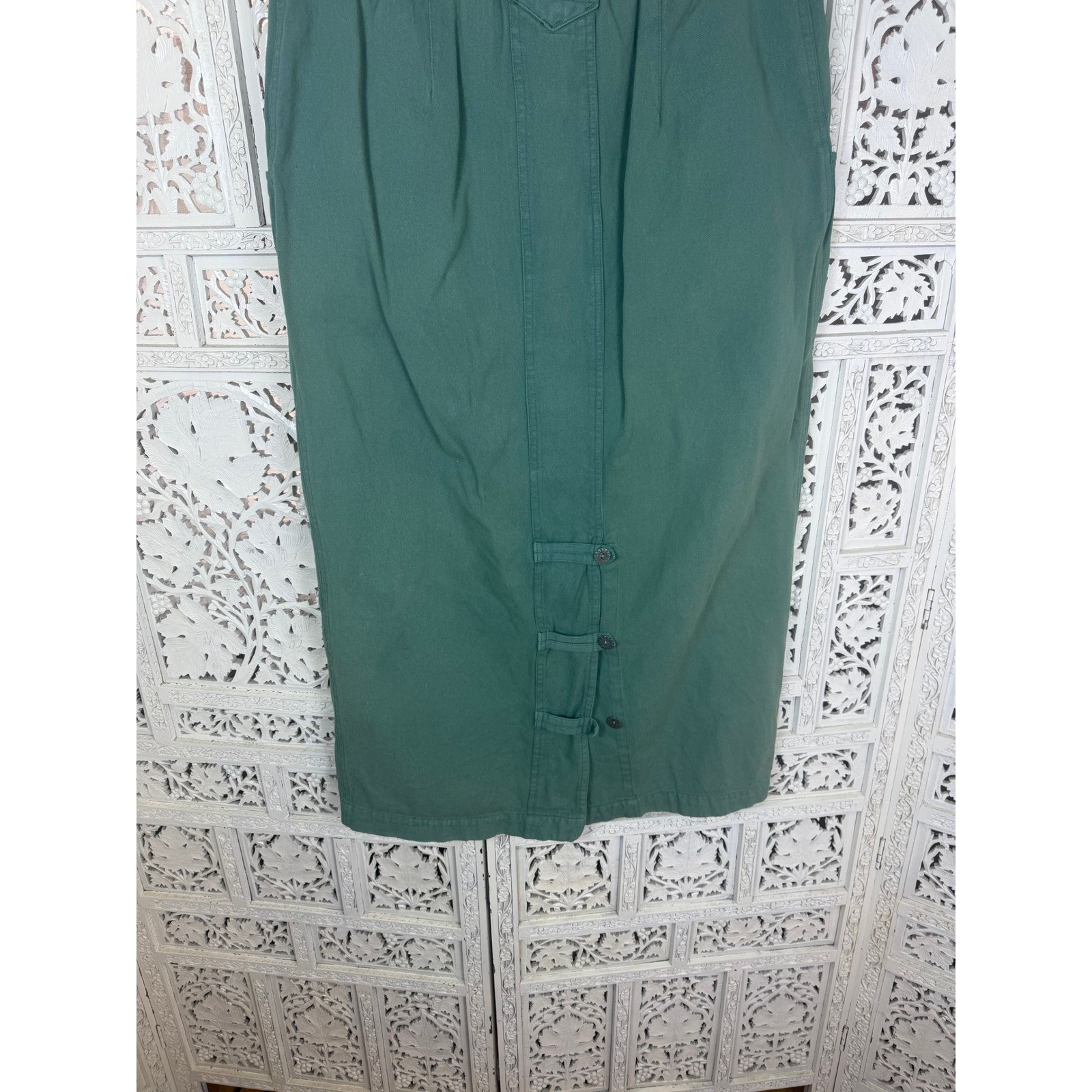 как выглядит Vintage Chicos 10 Years Sage Green Denim Maxi Skirt Sz M/L Retro 90s Indie фото