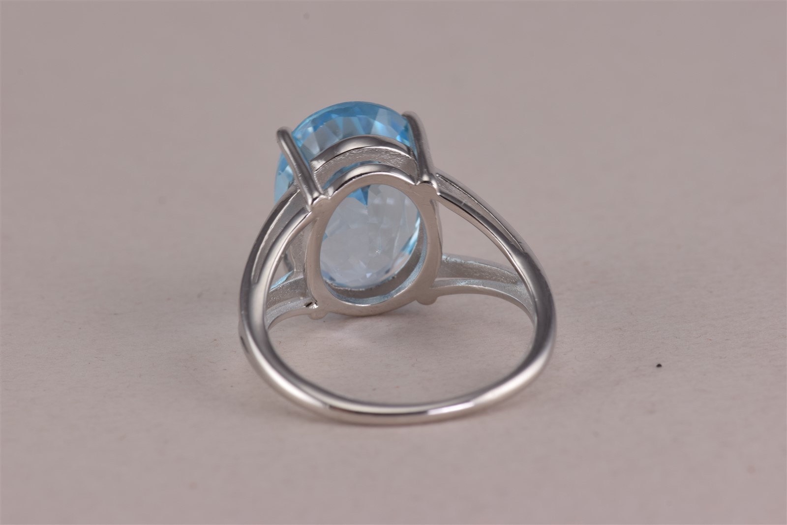 как выглядит Sterling Silver 14mm Oval Blue Sapphire Solitaire Split Band Ring 925 Sz: 6 фото