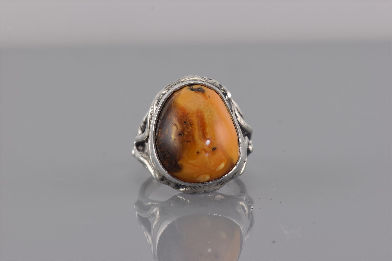 как выглядит Sterling Silver Butterscotch Amber Cabochon Abstract Band Ring 925 Sz: 6 фото