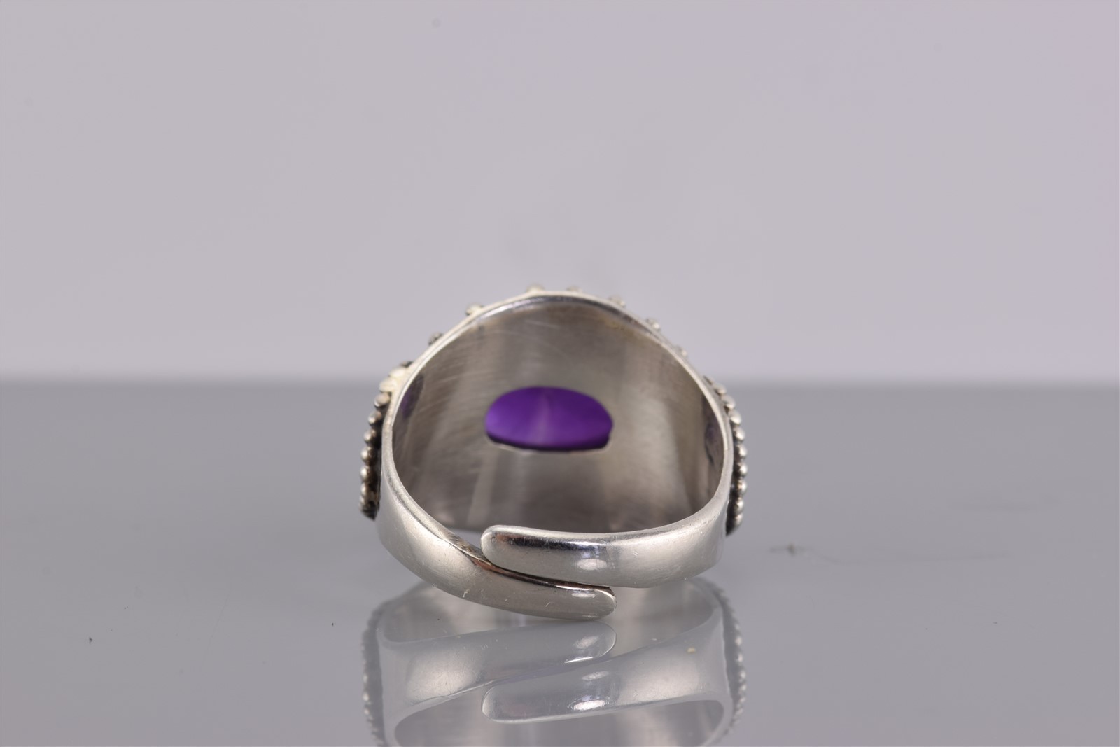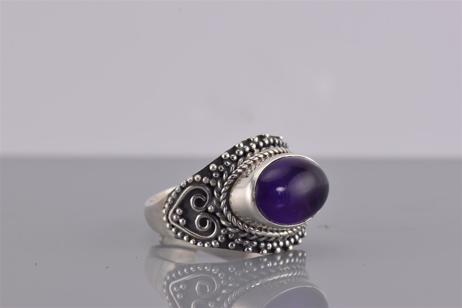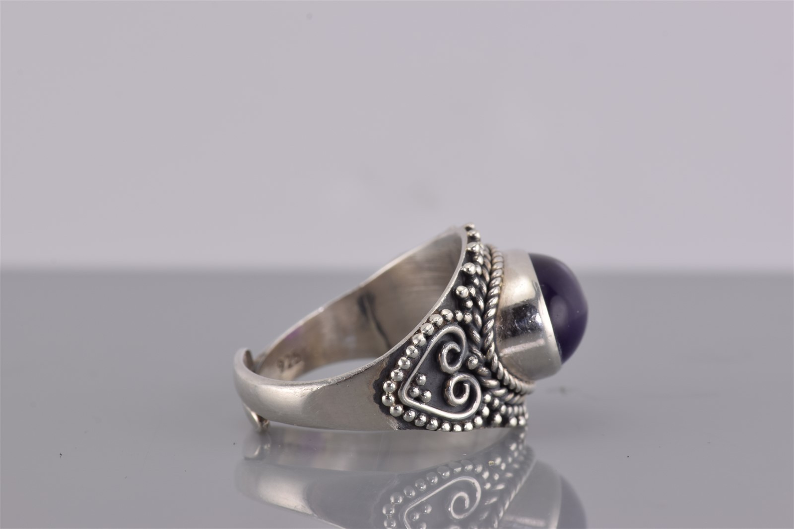 как выглядит Sterling Silver Beaded Scroll Purple Amethyst Cabochon Bali Band Ring 925 Sz: 8 фото