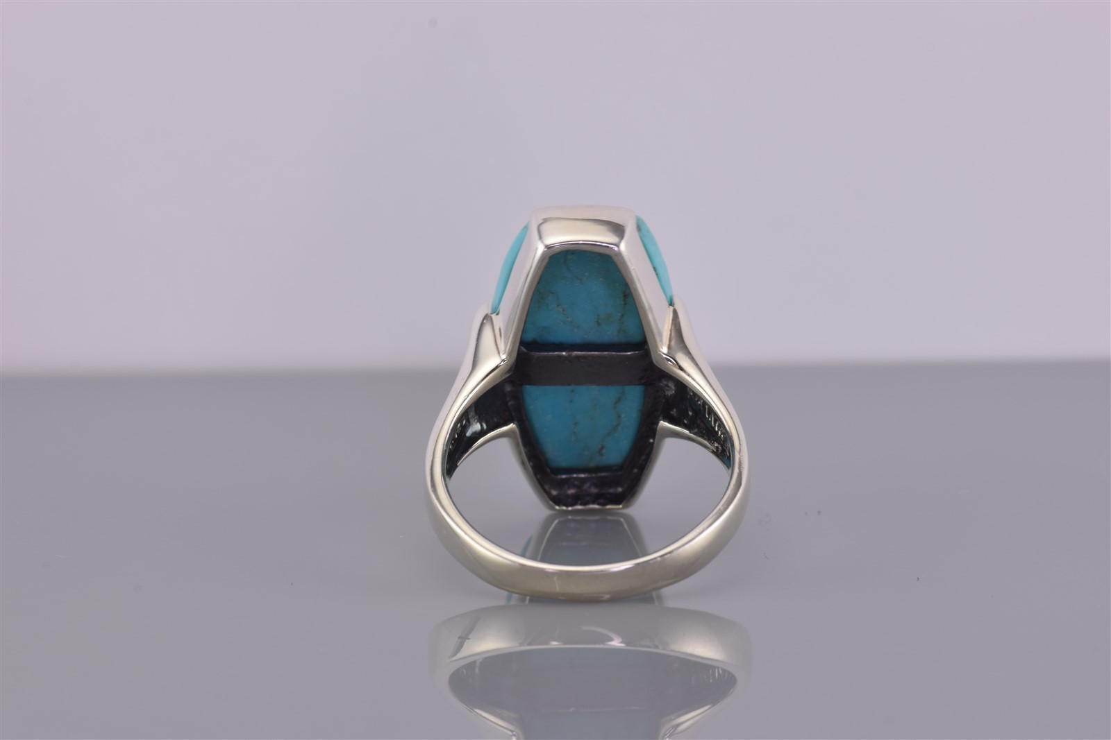 как выглядит Sterling Silver 26mm Faceted Blue Howlite Fluted Statement Band Ring 925 Sz: 9 фото