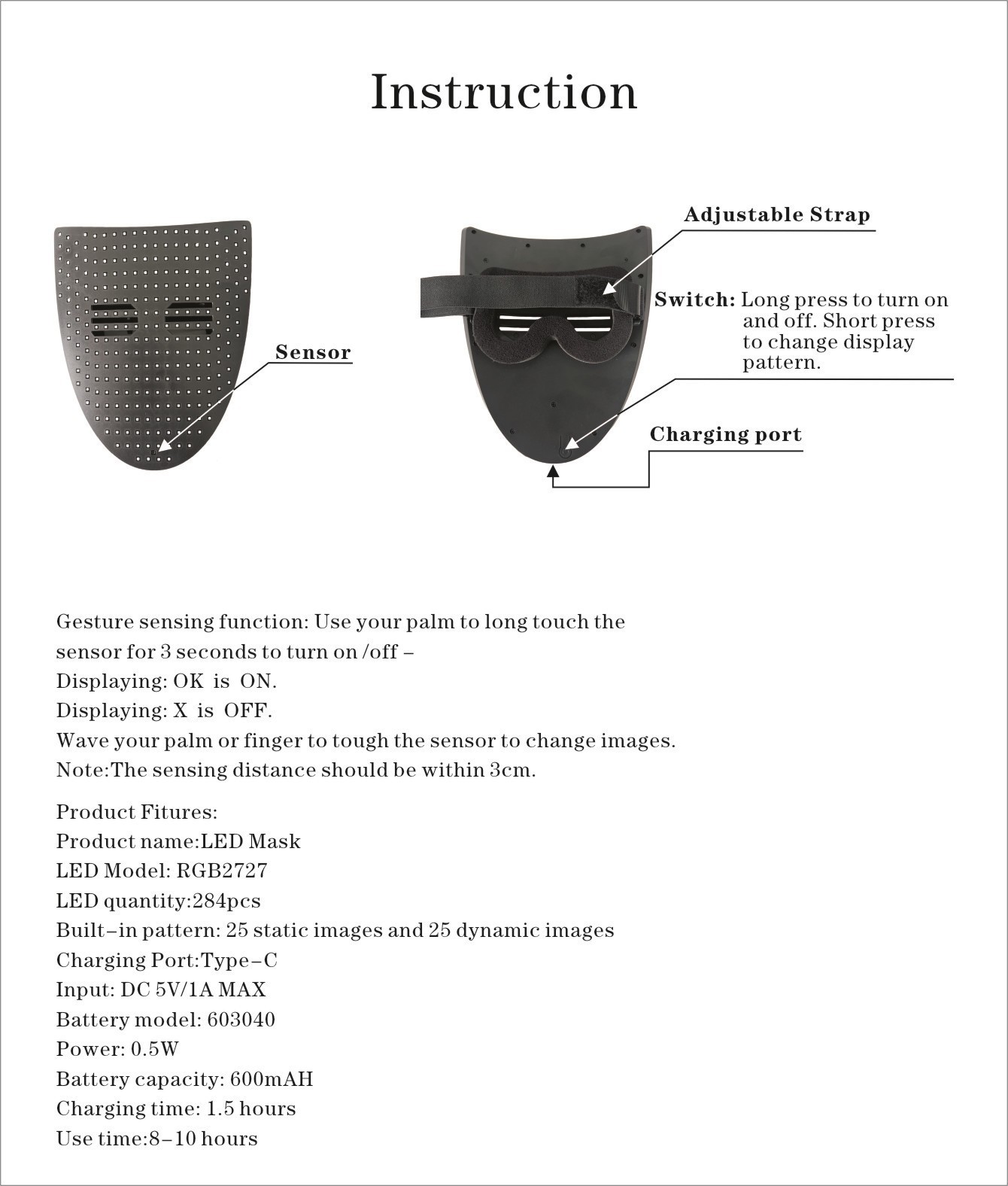 LED Halloween Mask/LED Mask with Gesture Sensor, Illuminated Mask 1-3pc