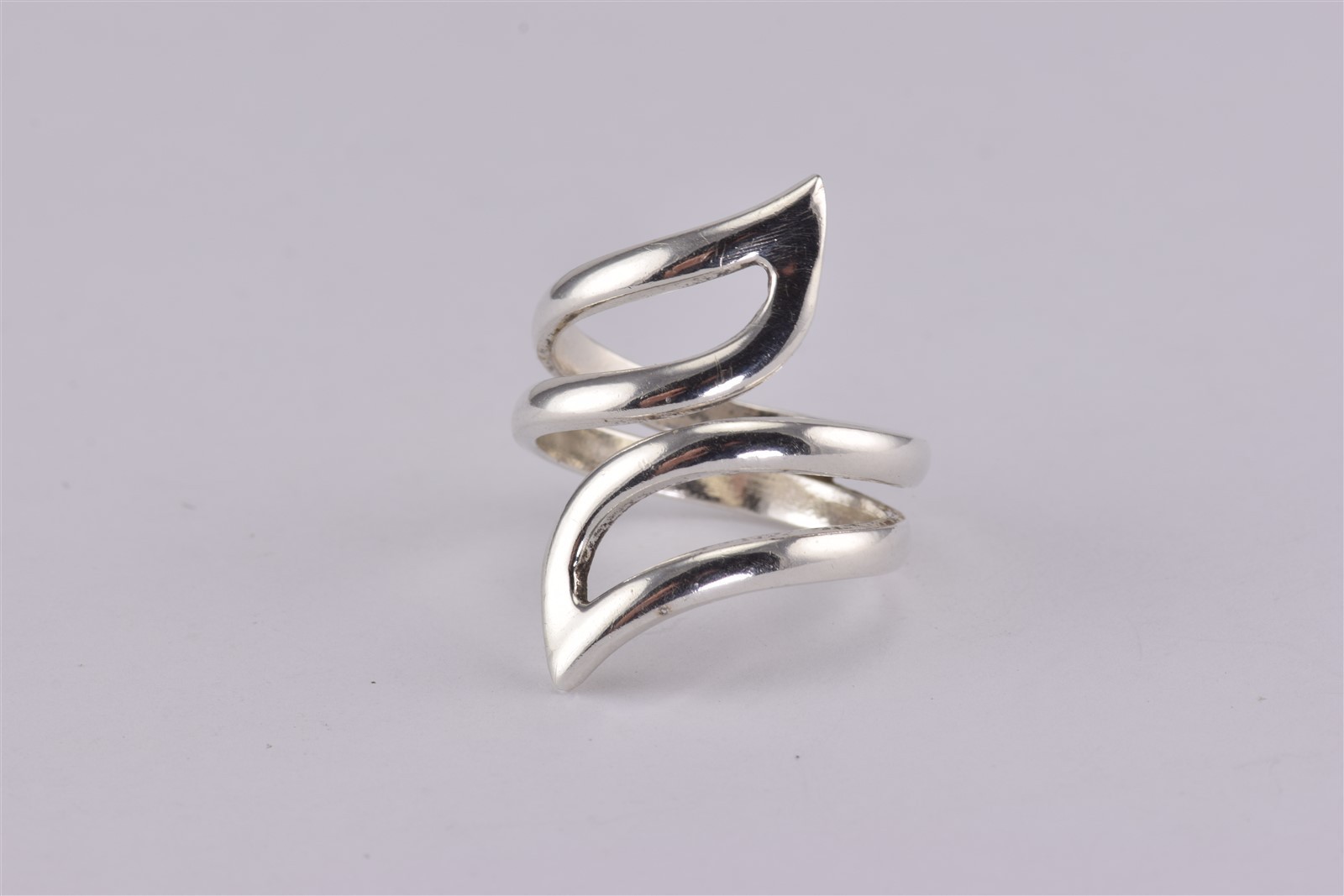 Sterling Silver Solid 29mm Swirled Open Work Bypass Band Ring 925 Sz: 7