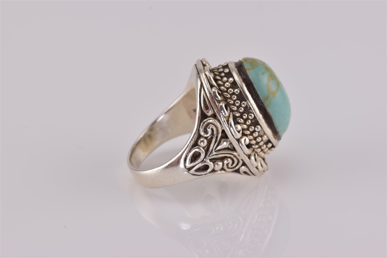 как выглядит Sterling Silver Oval Blue Turquoise Scrolled Bezel Band Ring 925 Sz: 6 фото