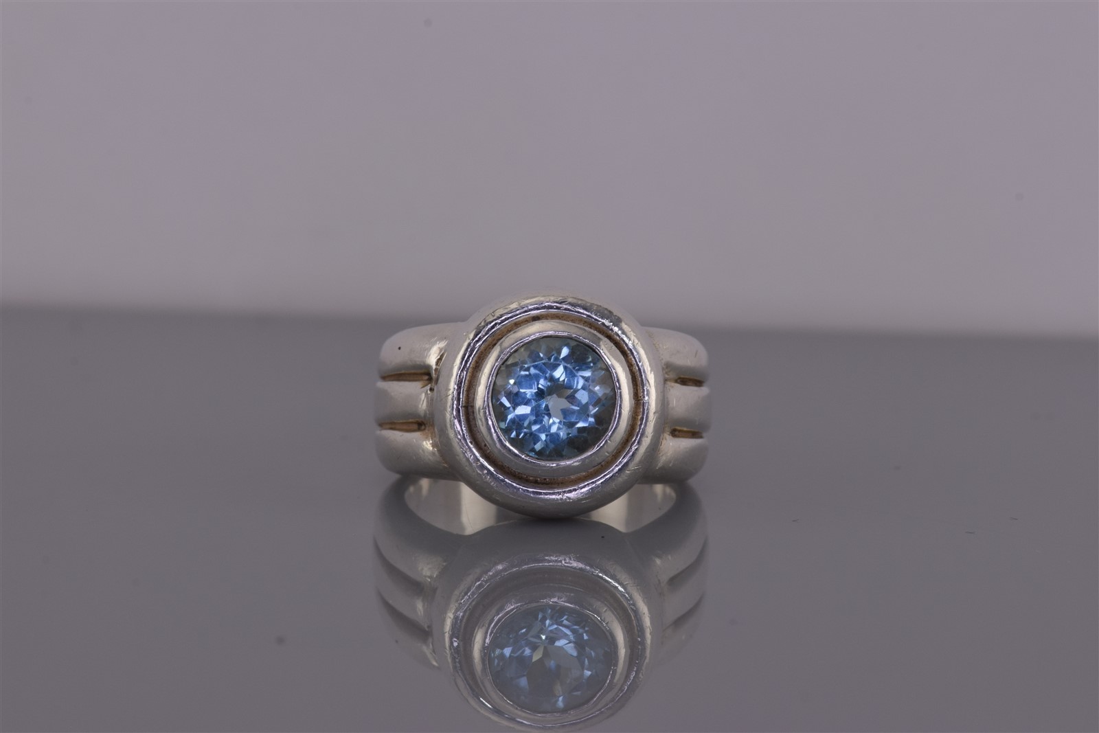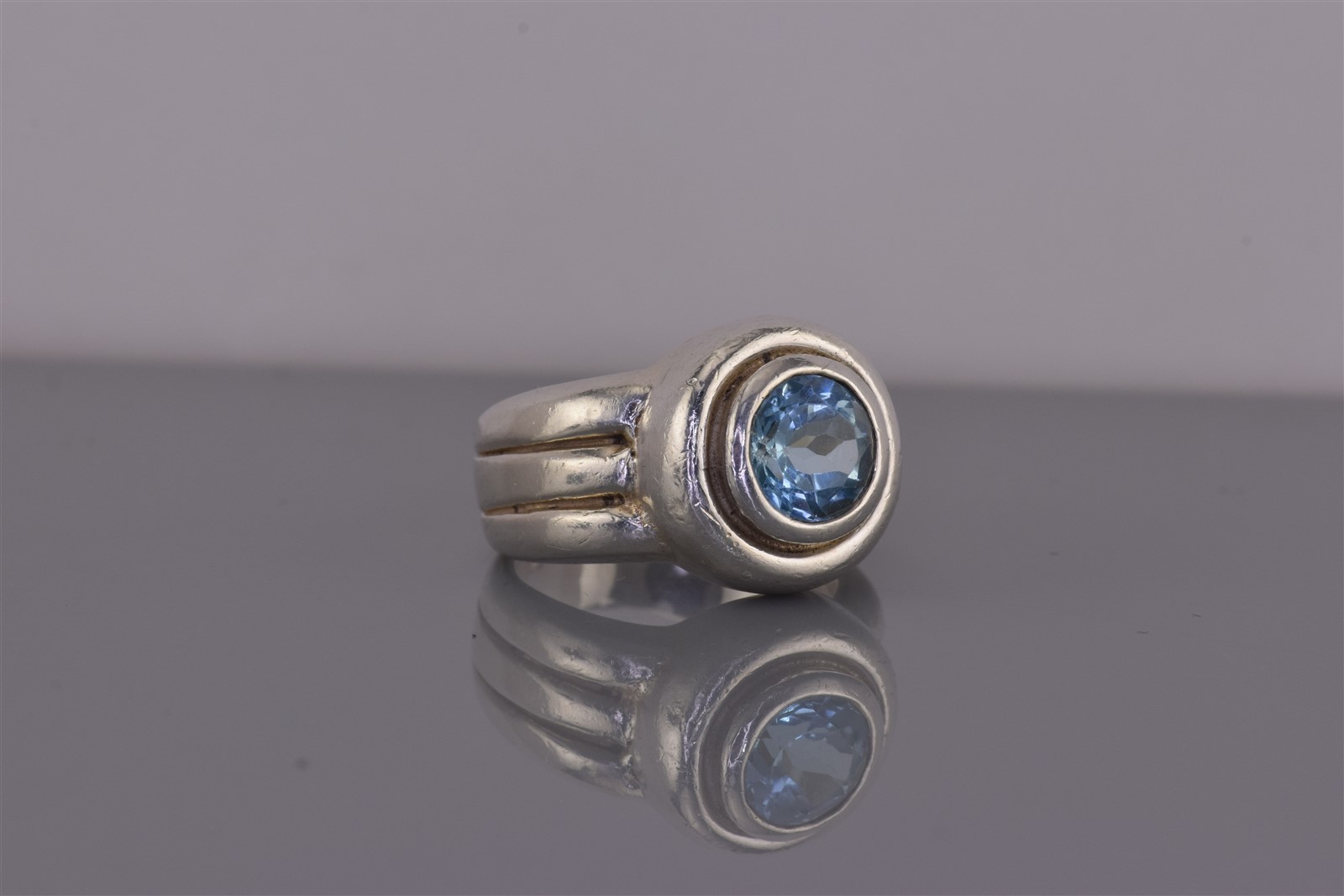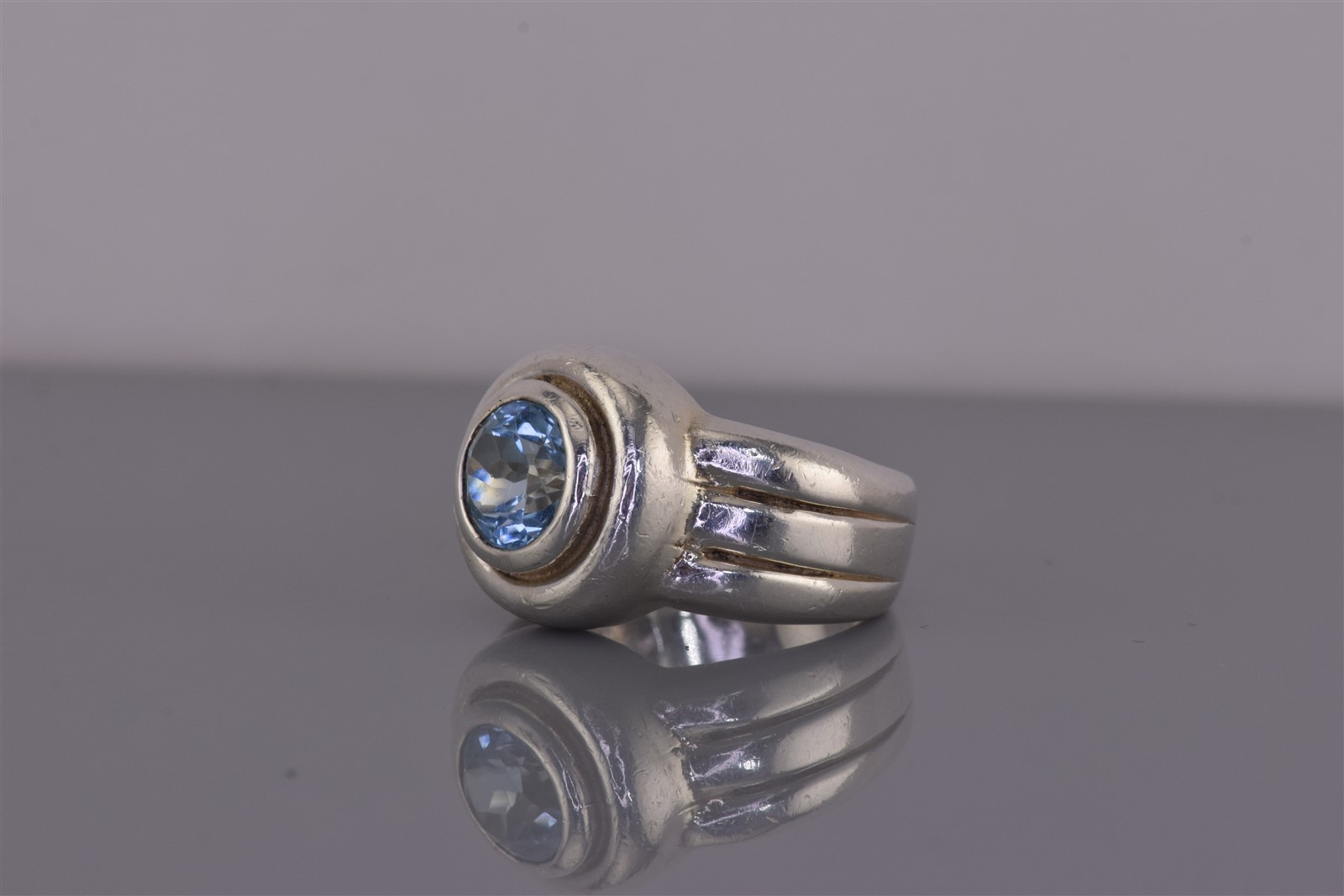 как выглядит Sterling Silver Bold Round Raised Blue Topaz Ribbed Band Ring 12g 925 Sz: 6 фото