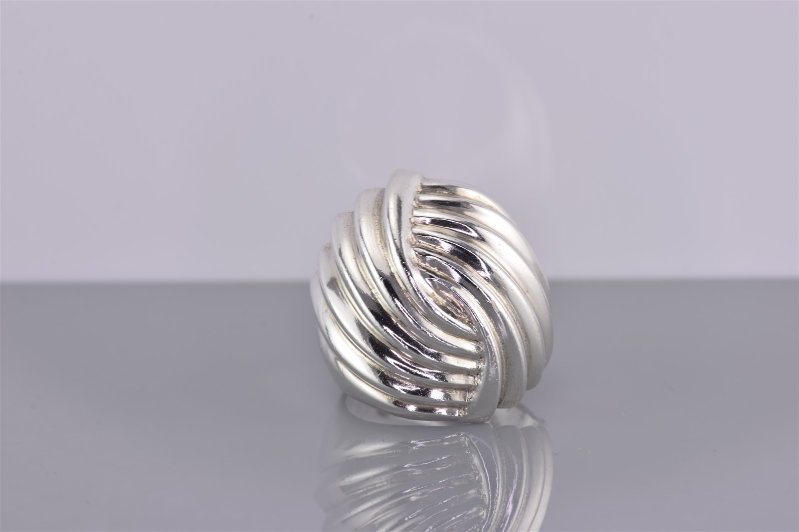 как выглядит Sterling Silver 24mm Rippled Rib Swirled Statement Dome Band Ring 925 Sz: 6 фото