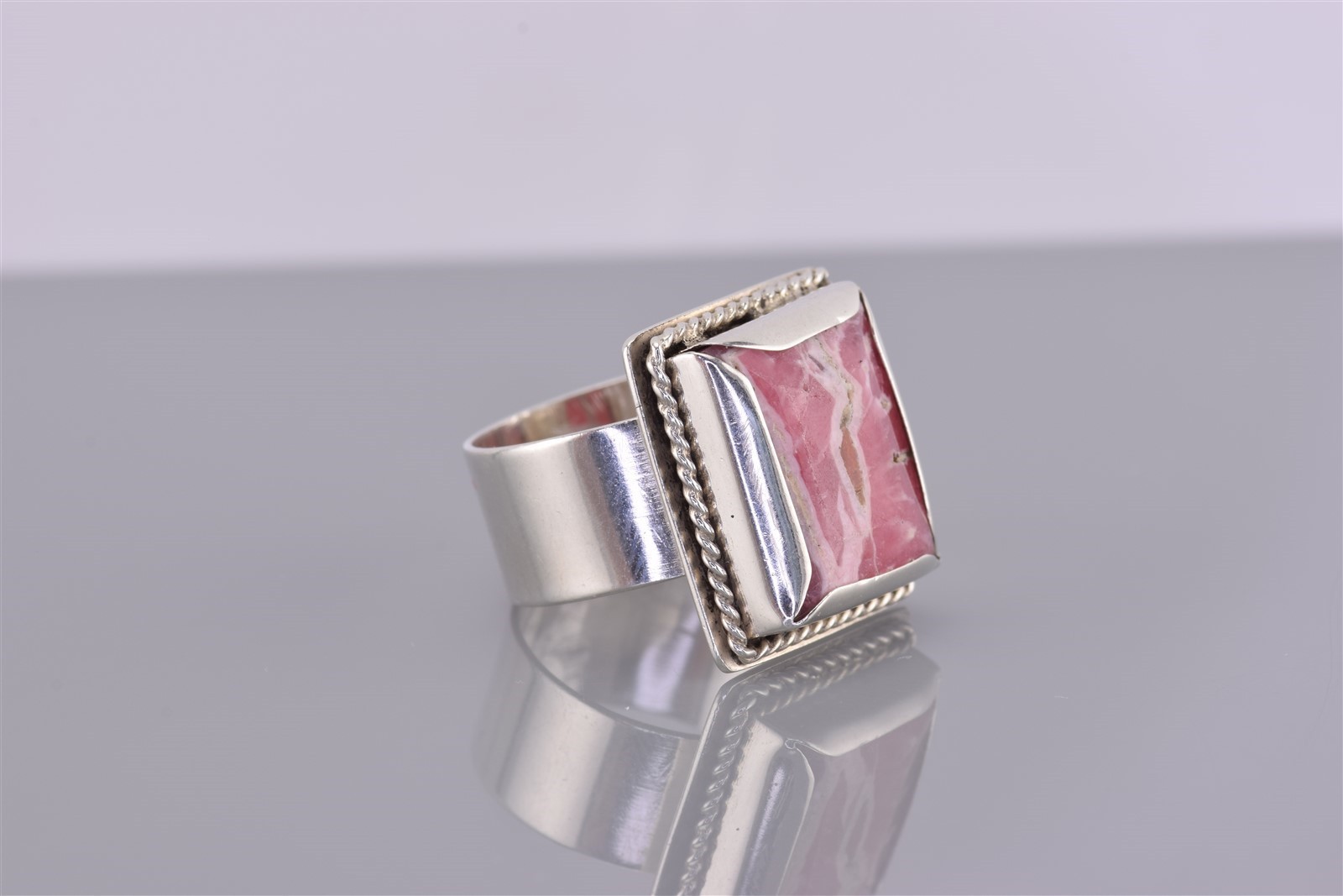 как выглядит Sterling Silver Squared Rhodochrosite Coiled Rope Trim Band Ring 925 Sz: 5 фото