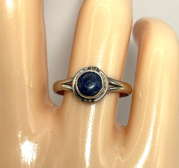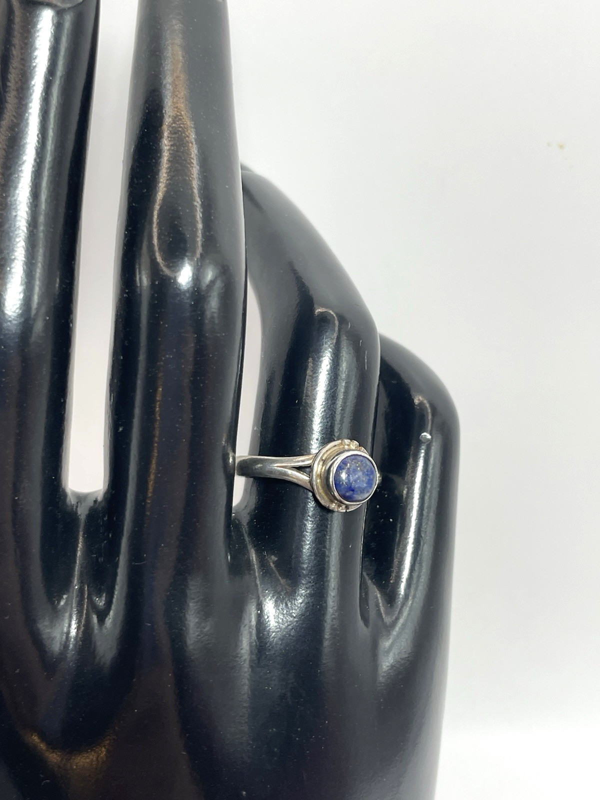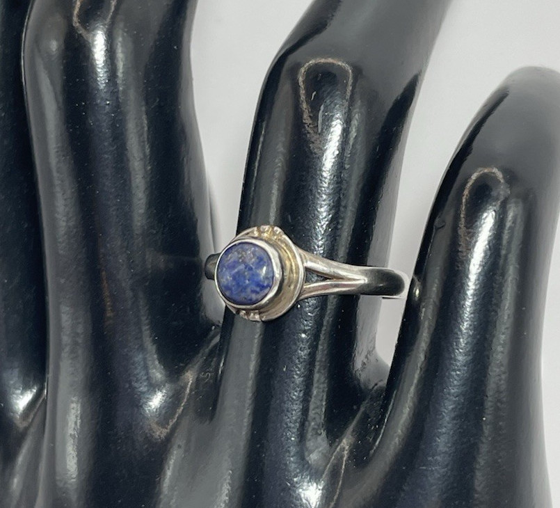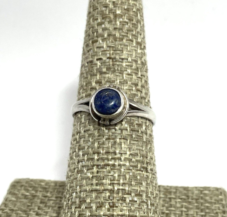 925 Sterling Silver Lapis Lazuli Petite Ring Sz 7 3/4 1.85g
