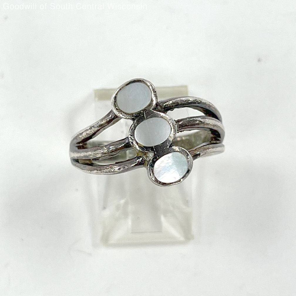 Split-Band Sterling Silver Tripple Mother-of-Pearl Ring, SZ 6.5 - 4.62g
