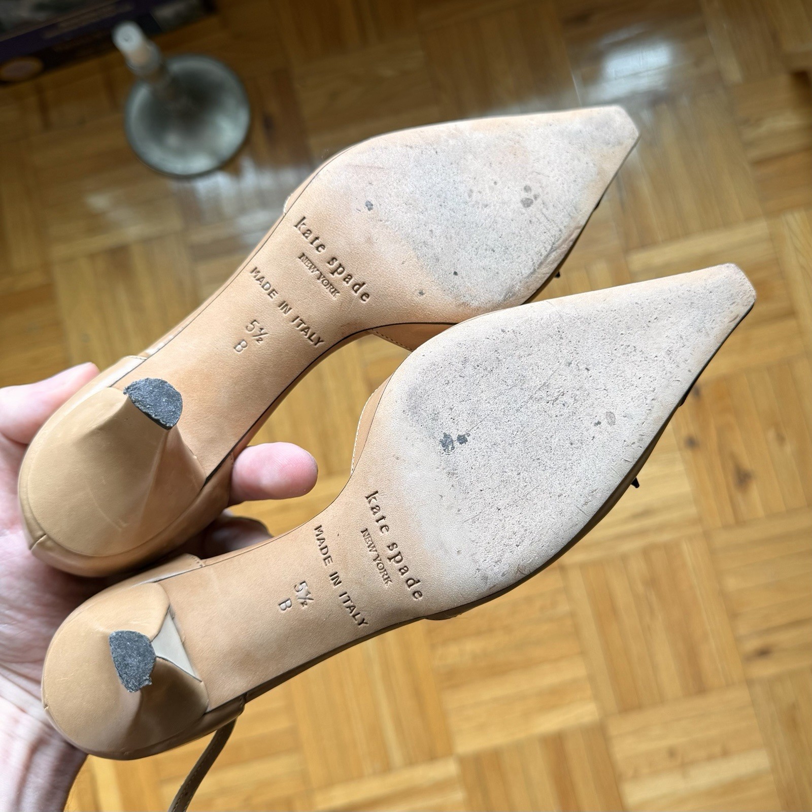 Kate Spade brown tan leather kitten heels with bow detail pumps Size US 5.5