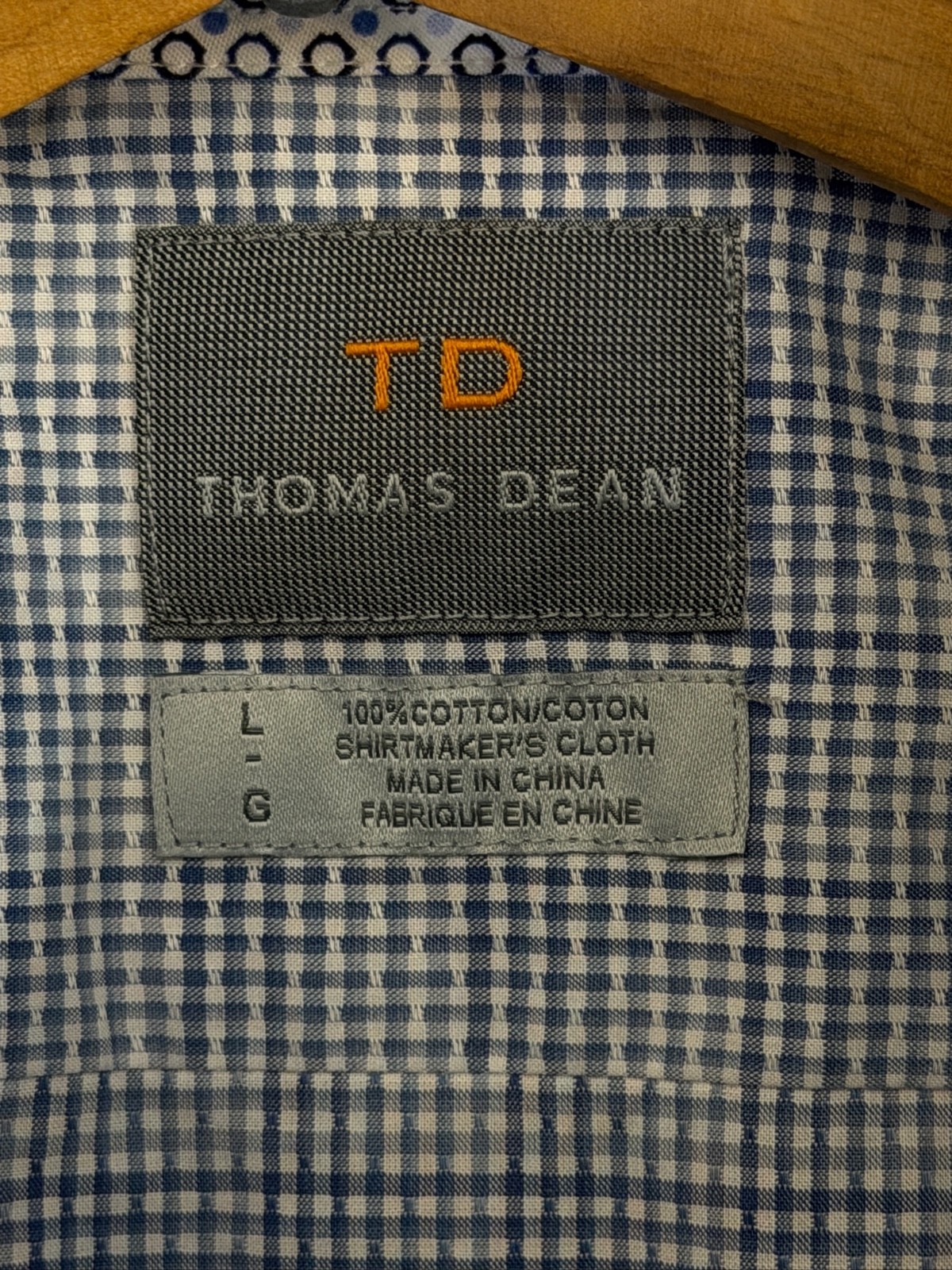 NWT Thomas Dean Co 110 MSRP Men's Button Up Shirt Sz L 100 Cotton T49A17-261