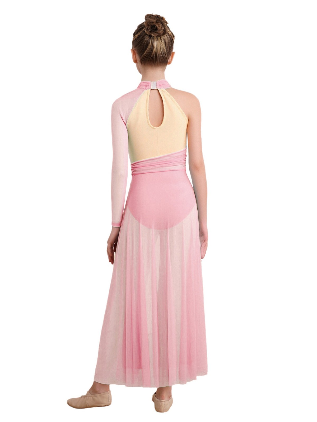 как выглядит US Kids Dance Dress Applique Ruched Leotard Contemporary High Low Mesh Skirt фото