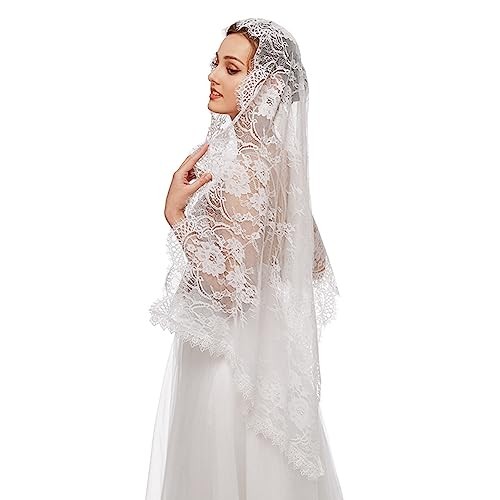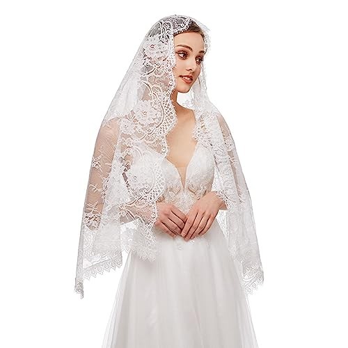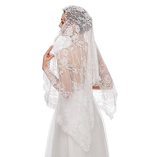 PRINCESS BRIDE Lace Mantilla Veil Vintage Floral Lace Scarf Triangle White-1