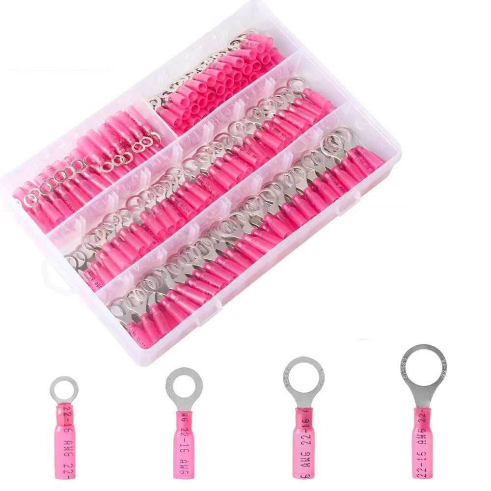 200Pcs Ring Eyelet Heat Shrink Wire 22-16AWG GA Gauge Connectors Terminals Kit