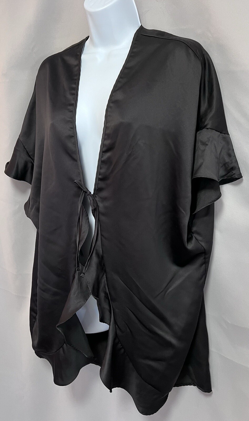 Victoria's Secret Women's Black Satin Robe Kimono Tie Front With Ruffle One Size