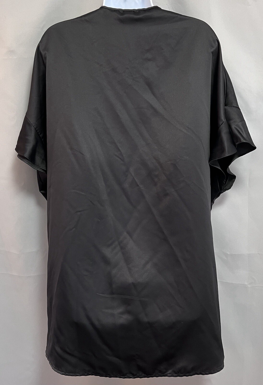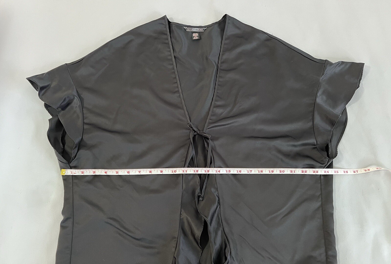 как выглядит Victorias Secret Womens Black Satin Robe Kimono Tie Front With Ruffle One Size фото