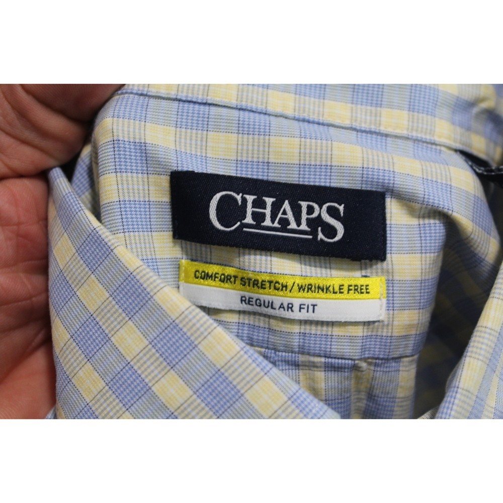 как выглядит Chaps Men Blue Button Down Shirt Plaid Comfort Stretch Size 16 фото