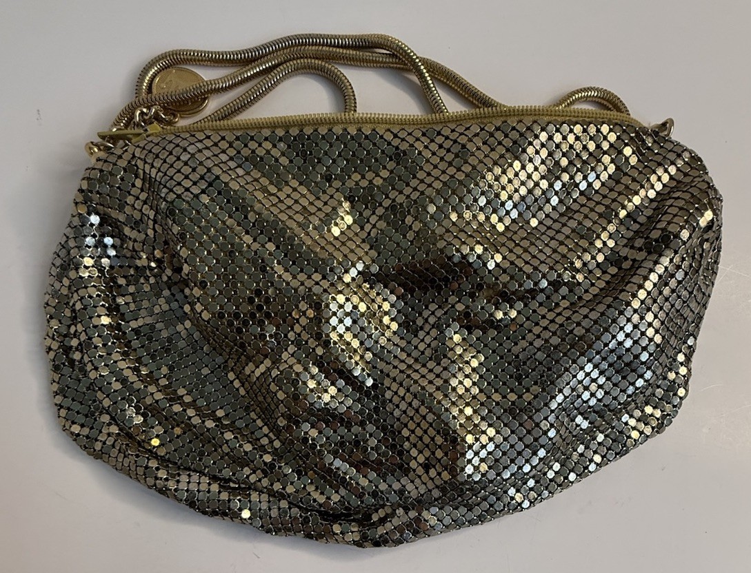 Vtg La Regale Gold Mesh Metal Beaded Chainmail Evening Purse Clutch Bag
