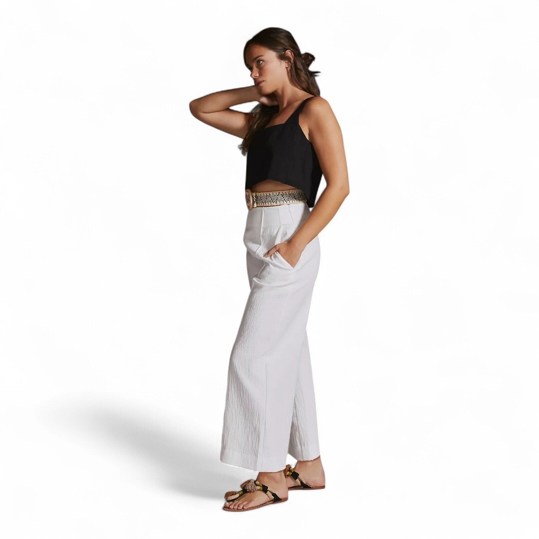 Maeve Anthropologie Pintucked Wide Leg Crop Pants White Size 4